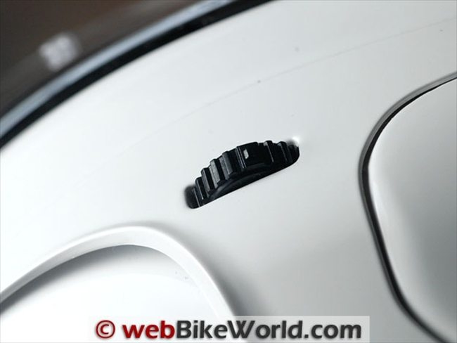 The face shield uses the HJC “RapidFire” removal system, which works well and is illustrated in the video below. The base plate has two stainless steel Philips head screws on either side for adjustment, if necessary, but our face shield fits tightly, so no problem there.