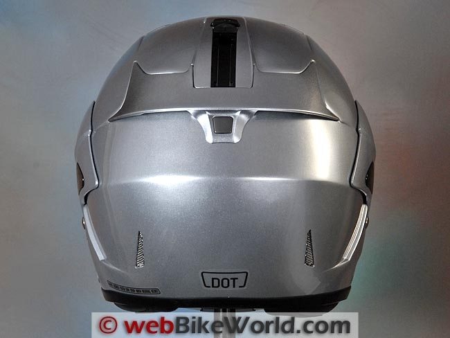 The silver metallic paint on this example looks good, although there is a slight tone mismatch on some of the attached parts, like the rear exhaust assembly and the Bluetooth intercom cover. Apparently, those parts were painted by a supplier or at a different time and/or place than the rest of the helmet.