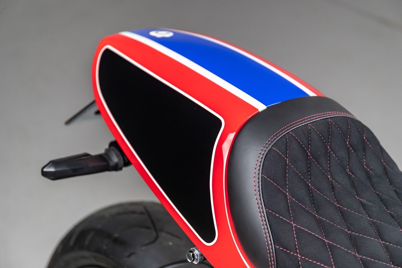 The bike gets Renthal Ultra Low handlebars, Tomaselli racing grips, short racing brake levers, and billet mirrors, according to MoreBikes. The bike also gets a hand-stitched Alcantara and leather solo seat, a handcrafted fairing, and some Racefit Urban Growler exhausts. Willison said the following about the project:
