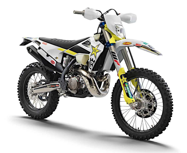The first is the TE 300i Rockstar Edition. It features a 300cc two-stroke engine that’s fuel-injected. The bike has oil injection so, you won’t have to worry about mixing oil and gas, which if you’ve owned a two-stroke, particularly an older one, you know this can be a major hassle.