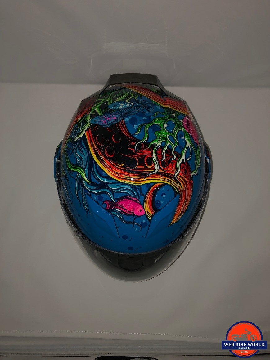 On the highway, my first thoughts were that the helmet provided great stability when facing forward and even when turning my head, the helmet remained stable. When I turned it up a notch and got into a very aggressive riding position, I discovered the benefit of the unique shape of the base of the helmet.