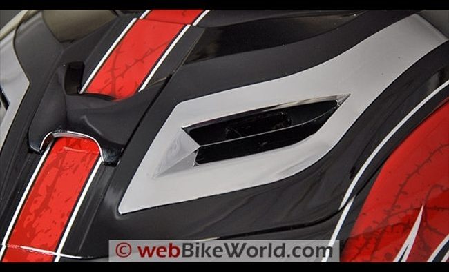 Those forward-facing vents may gulp air and force it down on to the rider’s head, but not without the expected result — noise. Not a whistling noise, like blowing over a Coke bottle, but a continuous wind rushing noise, especially when the vents are open.