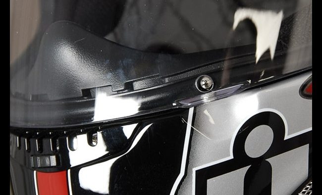 It’s interesting to note that while just about every motorcycle helmet manufacturer other than Arai has gone to a flush-fitting, over-the-shell visor, Icon is using a side plate system on the Airframe and most of their other helmets.