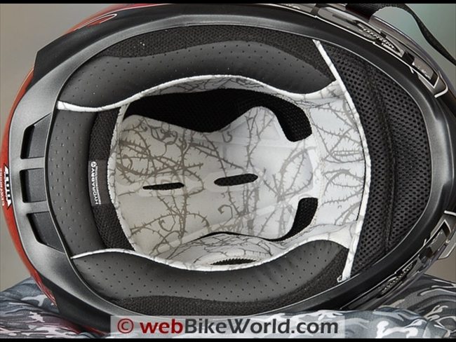 The liner fabric in the Airframe is very comfortable. The material is Icon’s “HydraDry” moisture-wicking material and it does seem more comfortable than I’ve experienced on other helmets.