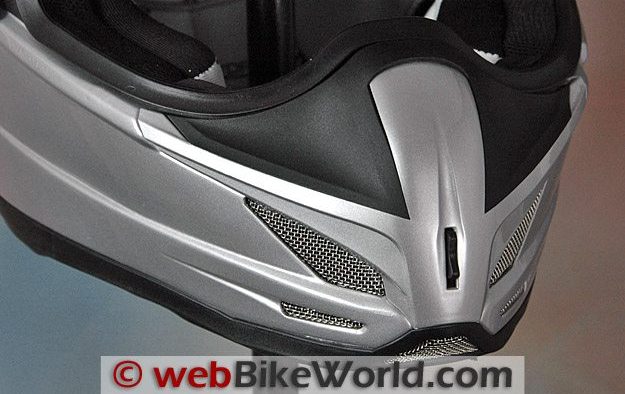 The mesh covers on each side of the beak do allow a lot of air to pass through the chin bar, but only if two well-hidden panels are opened on the inside of the chin bar. I rode with the helmet for a couple of weeks before I discovered that these vents could be opened from the inside.