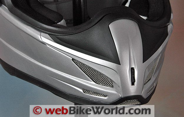 The mesh covers on each side of the beak do allow a lot of air to pass through the chin bar, but only if two well-hidden panels are opened on the inside of the chin bar. I rode with the helmet for a couple of weeks before I discovered that these vents could be opened from the inside.