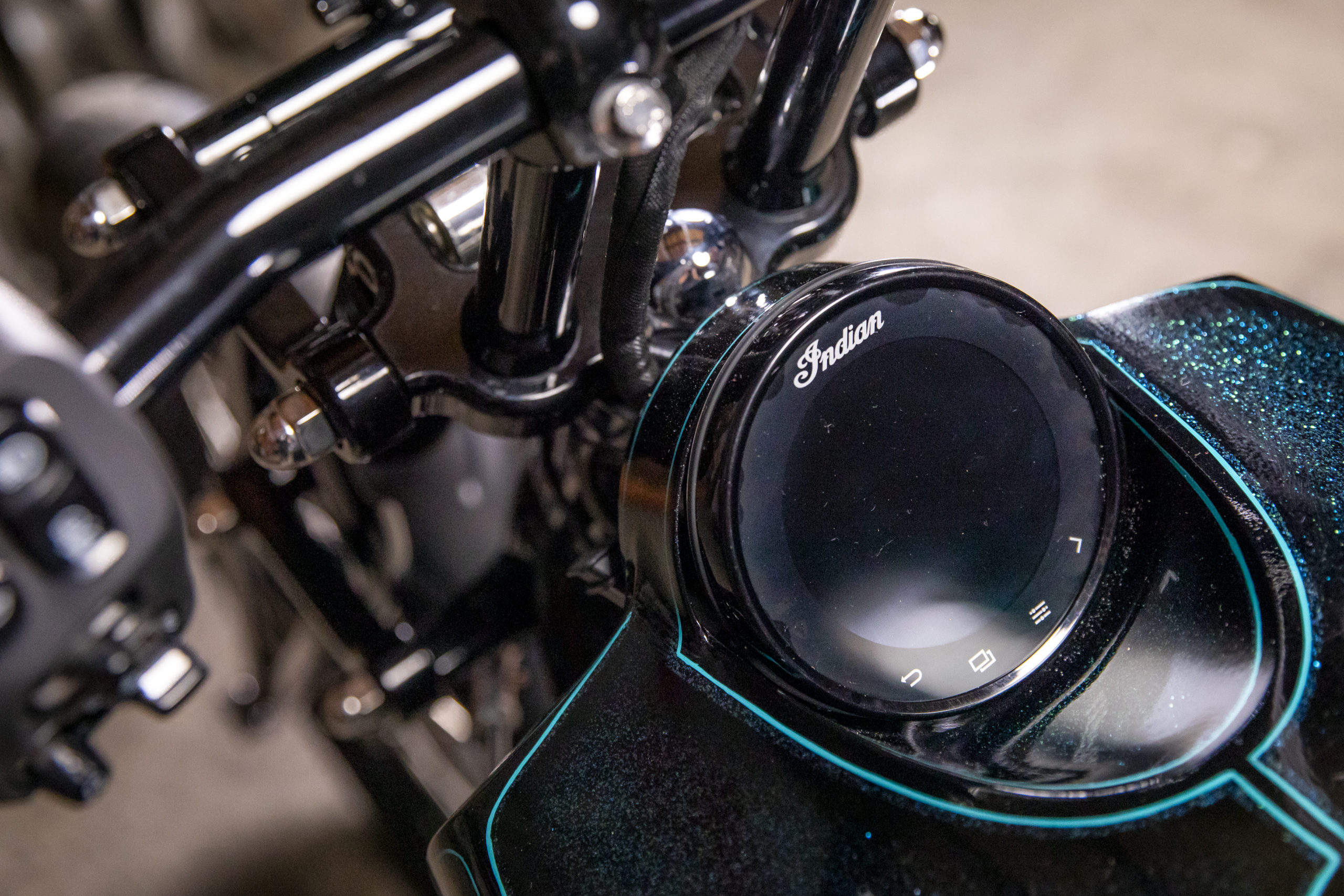 - Custom-built, slightly recessed tank to showcase 4” touchscreen display with RideCommand, while still allowing functionality for the fuel pump and front mounting points.