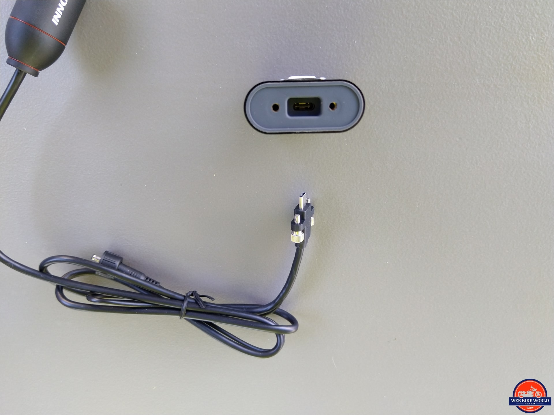 Both leads run into the sealed USB-C connector housing. When this connector is inserted into the port on the top of the DVR, it is very sturdy and weather resistant. When the two thumbscrews are inserted and tightened up, it is waterproof.