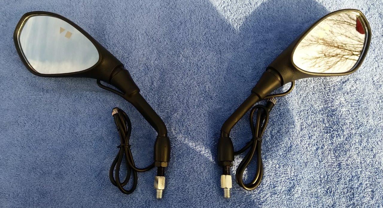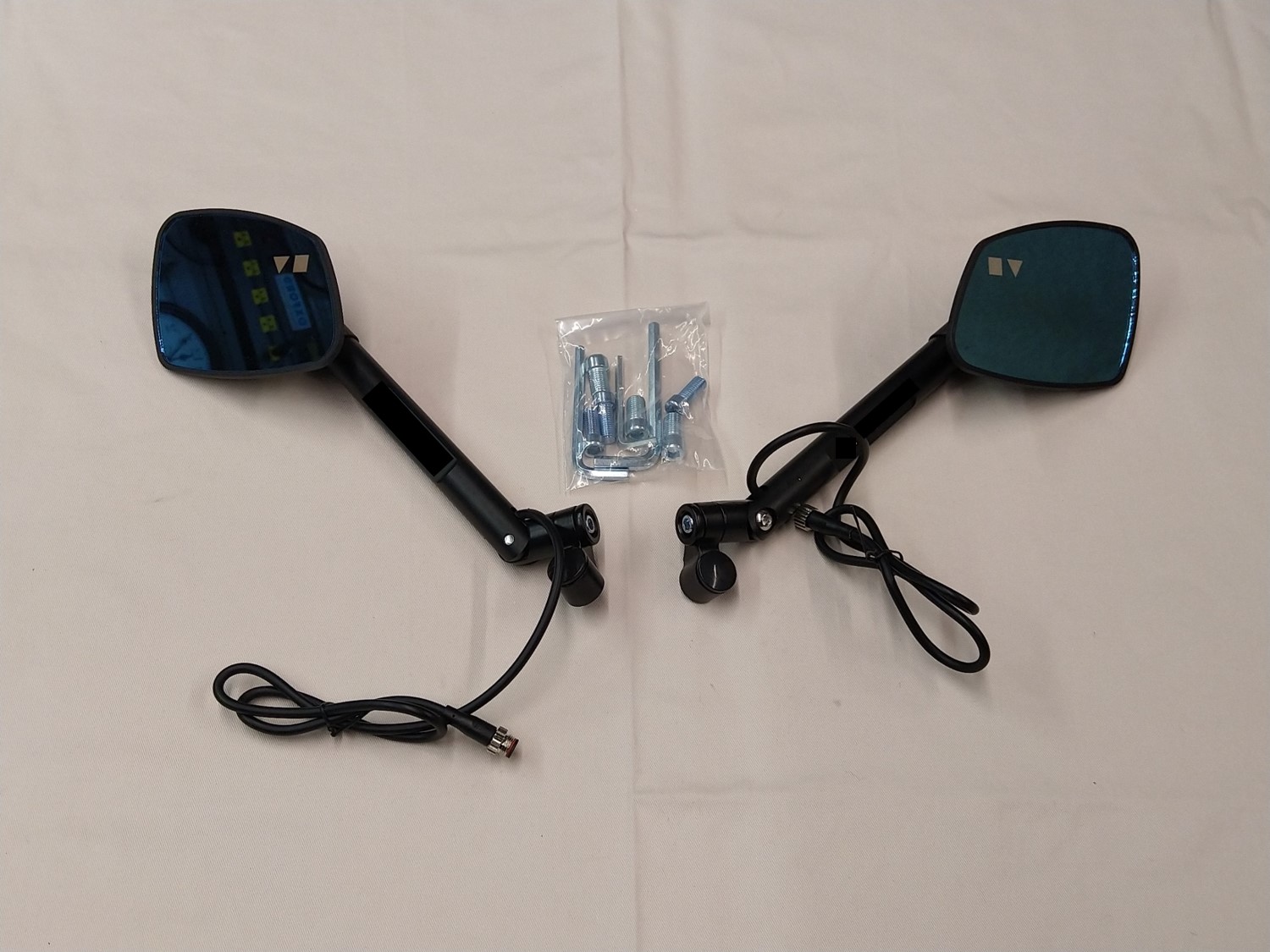 The set provided with this Version 1 system are universal style with large mirror surfaces – well shaped and with an excellent rear field of view. The two side-by-side LEDs are precisely fitted into the mirror layer and the pieces are well-finished, durable and professional looking.