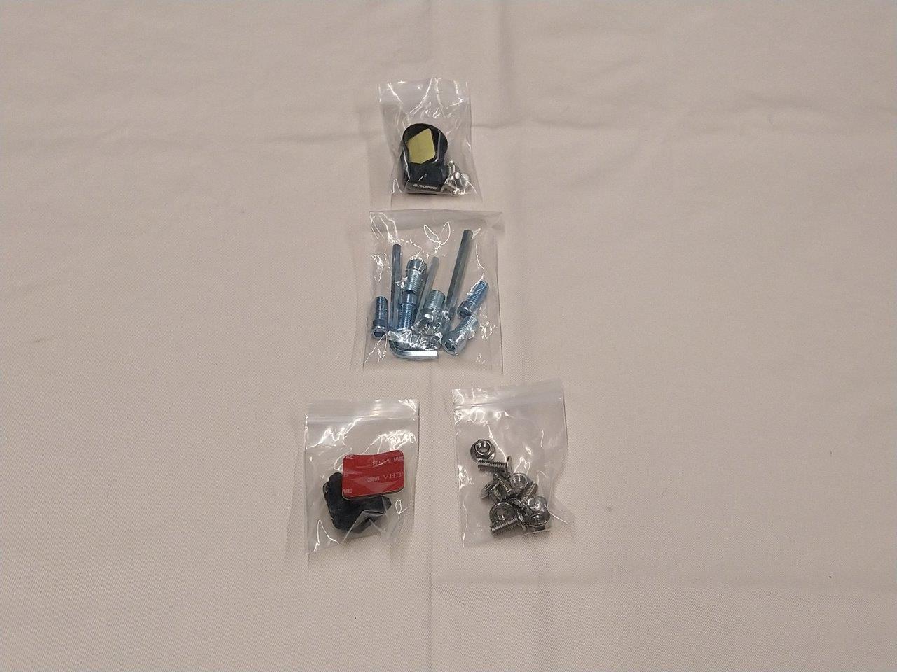 A set of universal mount multi-joint mirrors with 10mm threaded bases, along with 8 to 10mm adapters were included with this one-off first version kit, but some adaptation was still needed for use on the left and right threaded mirror adapter mounts that BMW uses…but they got put on and used.