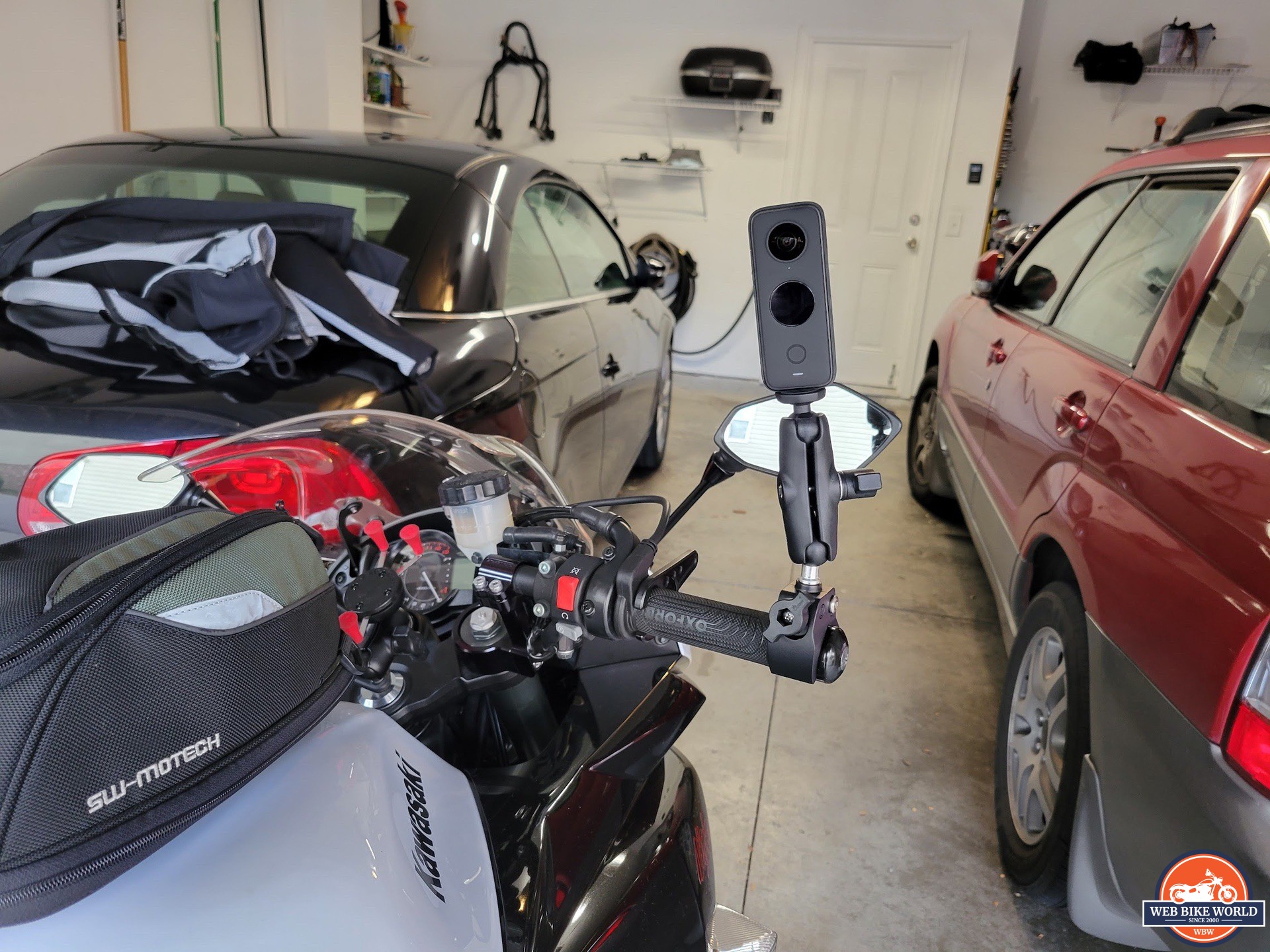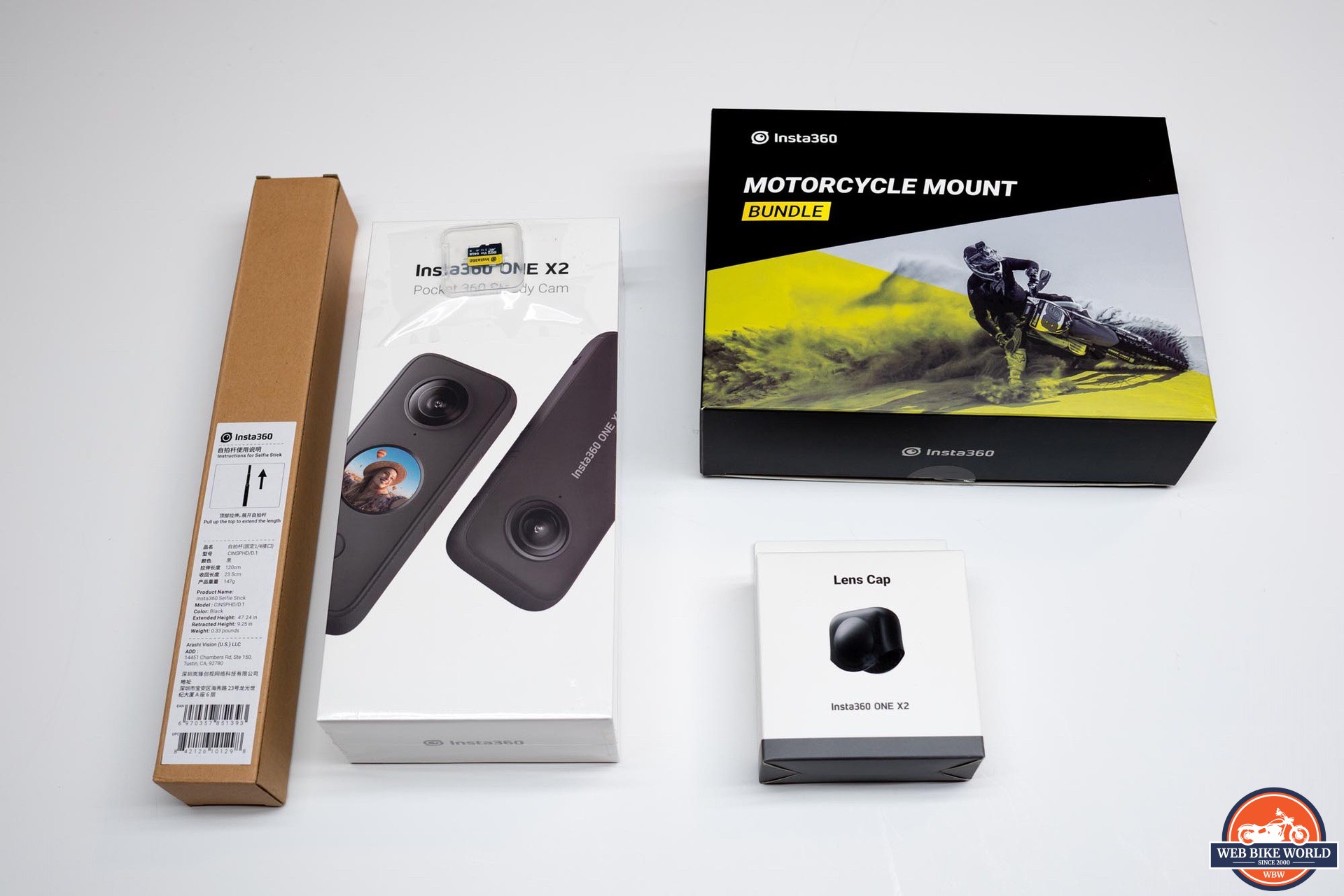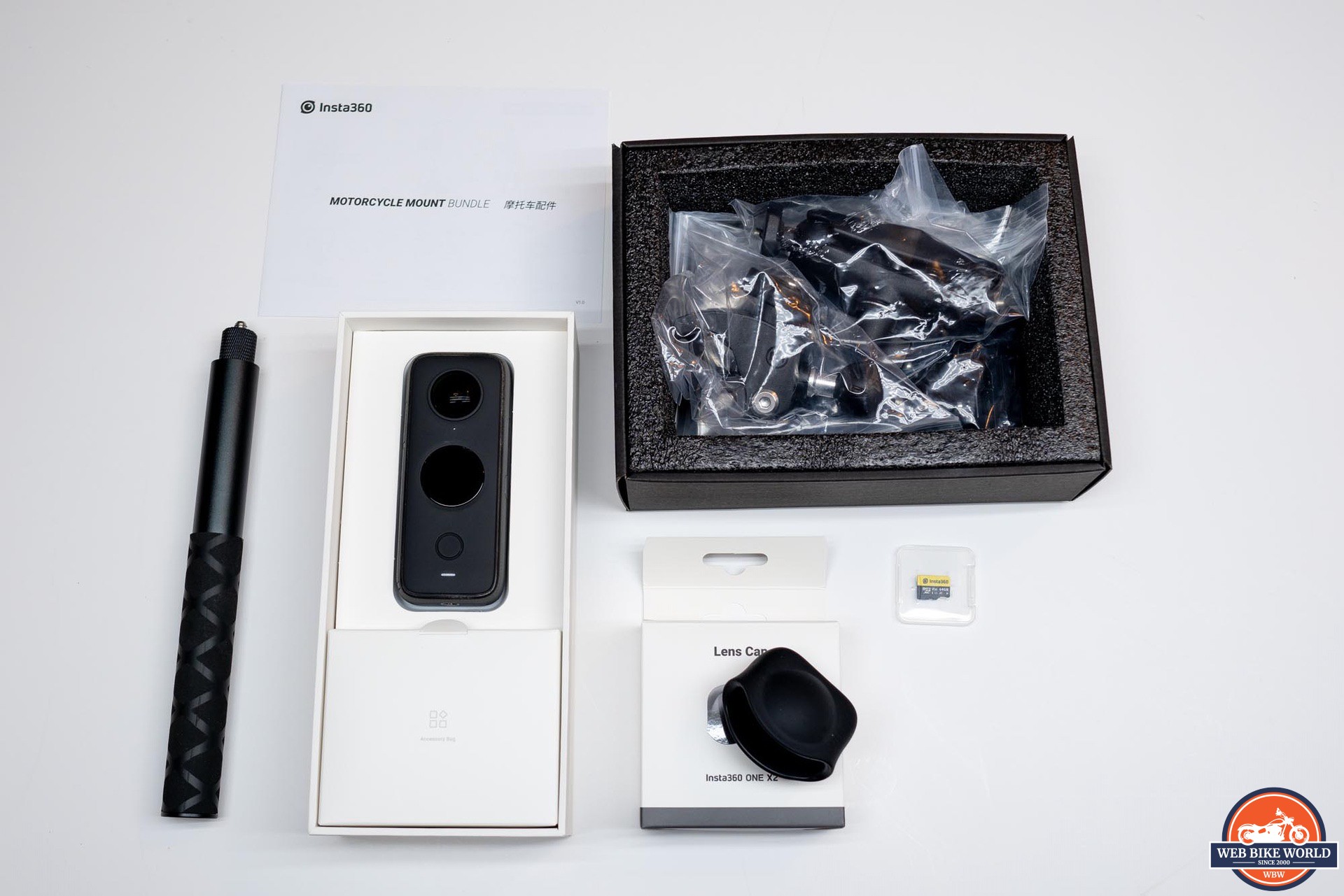 Seeing as this review is for webBikeWorld.com, Insta360 shipped their motorcycle mount bundle to me along with the camera. This kit includes several pieces of Go-Pro compatible hardware like the adhesive bases with snap-in connectors, multiple (4) ¼ 20 thread adapters, 3M adhesive pads, a 6 inch extension rod, and a small wrench for tightening the fasteners.