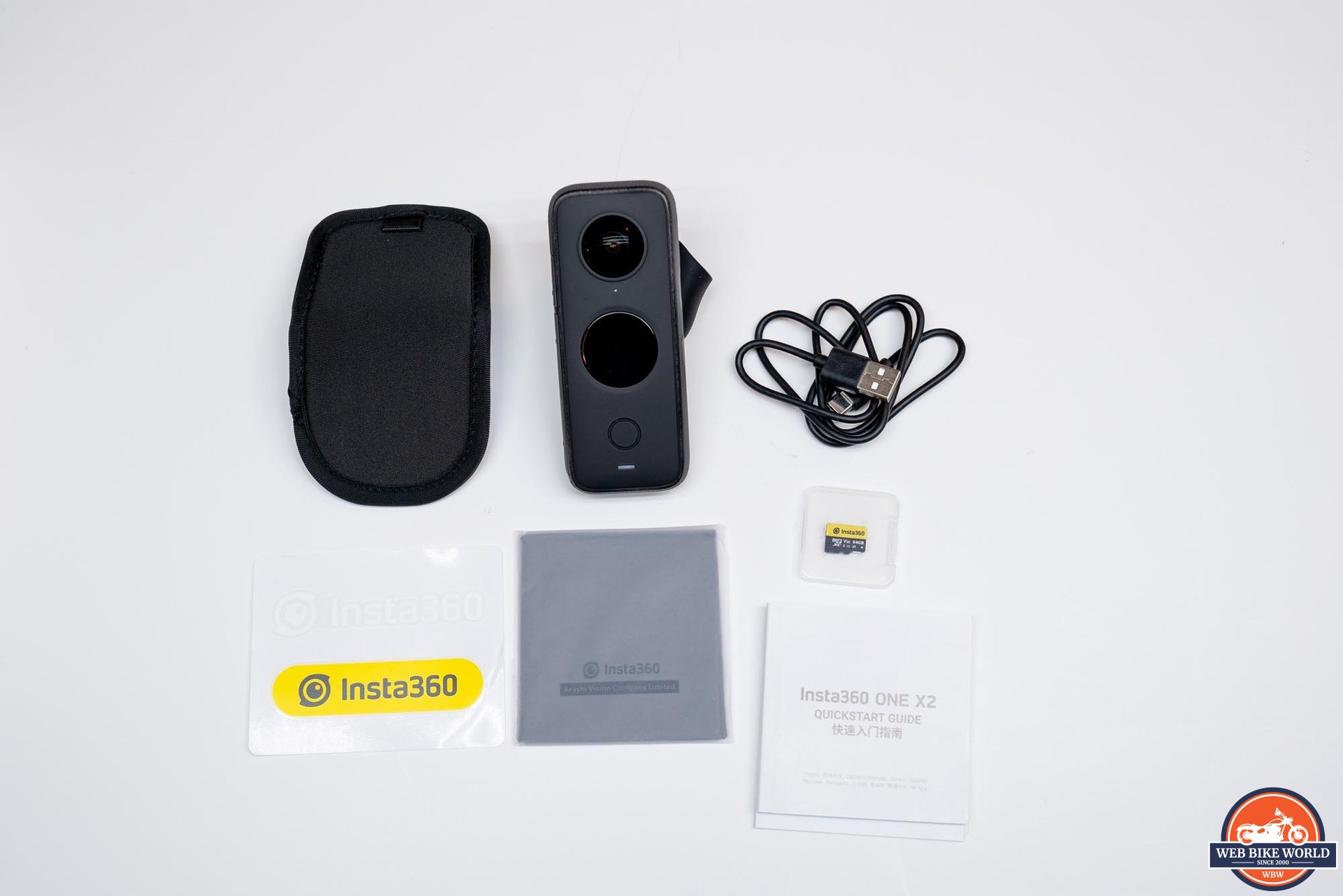 In the box, Insta360 provides a USB-C charging cable, a protective nylon pouch, a printed quick start guide, and the battery. No charger is provided, so one is expected to use the included cable with whatever USB port one has available. I would say it’s odd not to include a charger, but this is becoming more and more often the case with USB charged devices.