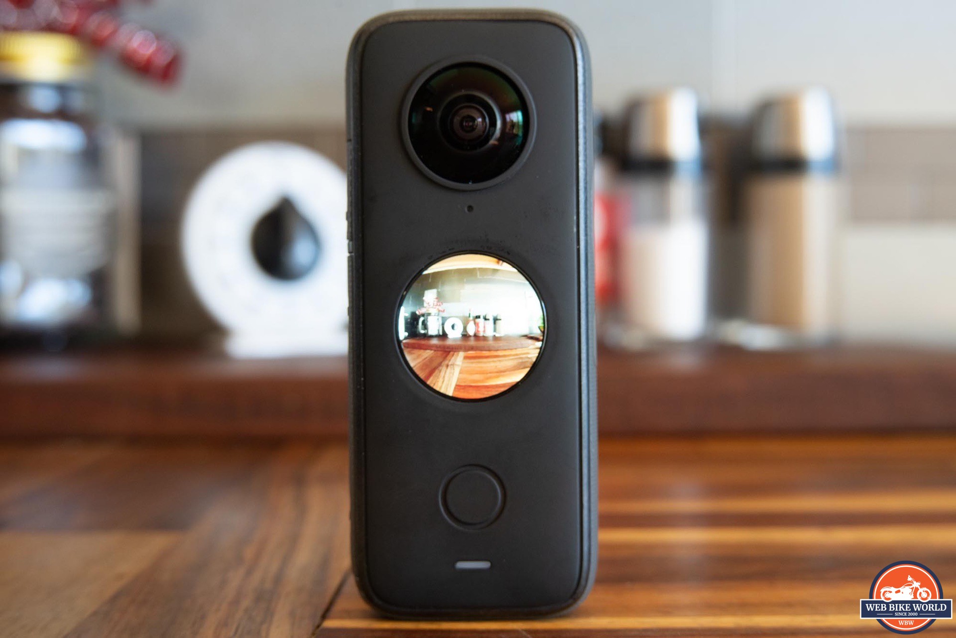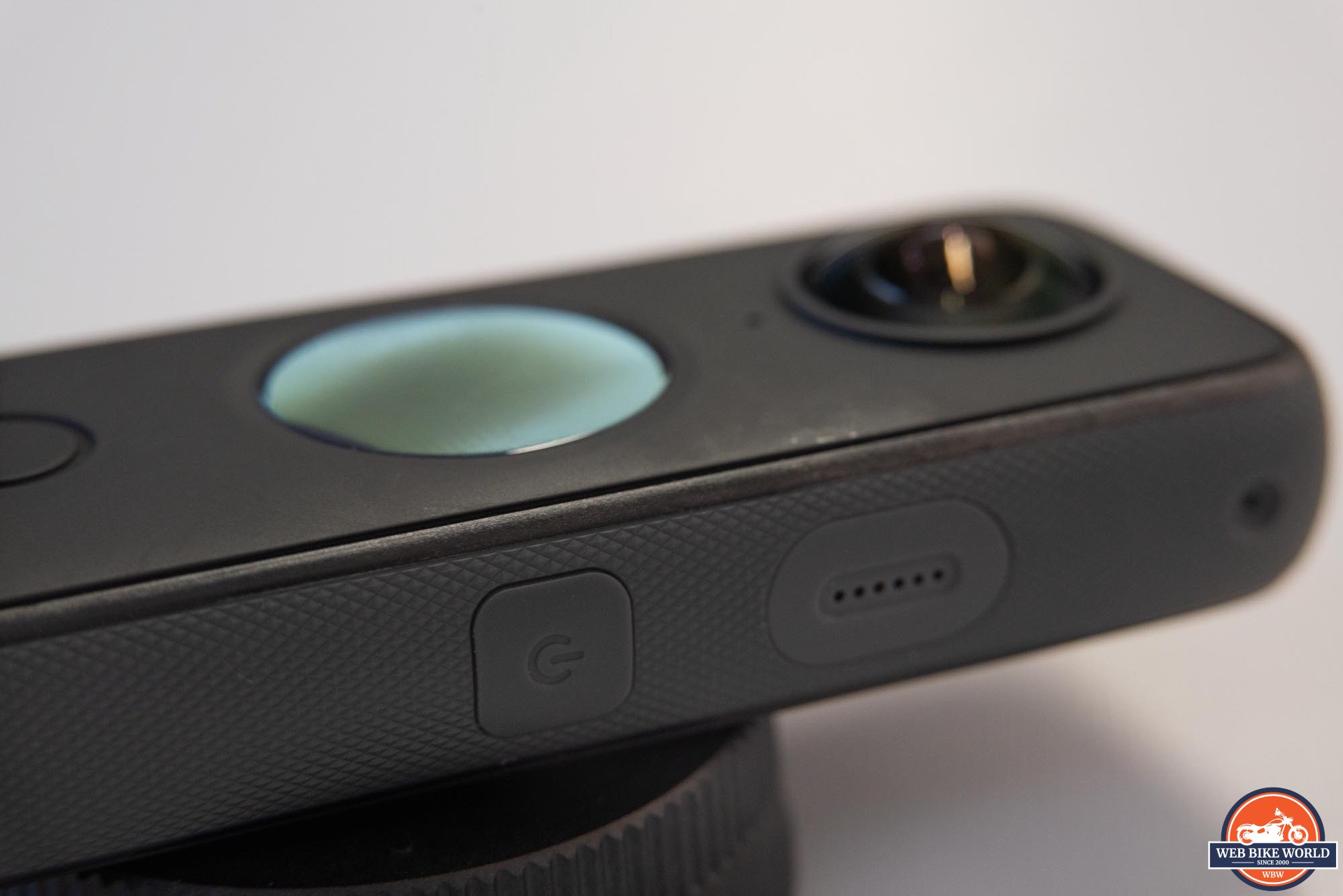The most prominent features are the two 7.2mm (35mm equivalent) lenses located on the front and rear of the camera. Since they have to protrude from the camera body in order to see a full 180 degrees each, it leaves the glass “exposed”. I was concerned that these could be easily damaged riding on the street with fast moving dust and small rocks as a possible hazard.