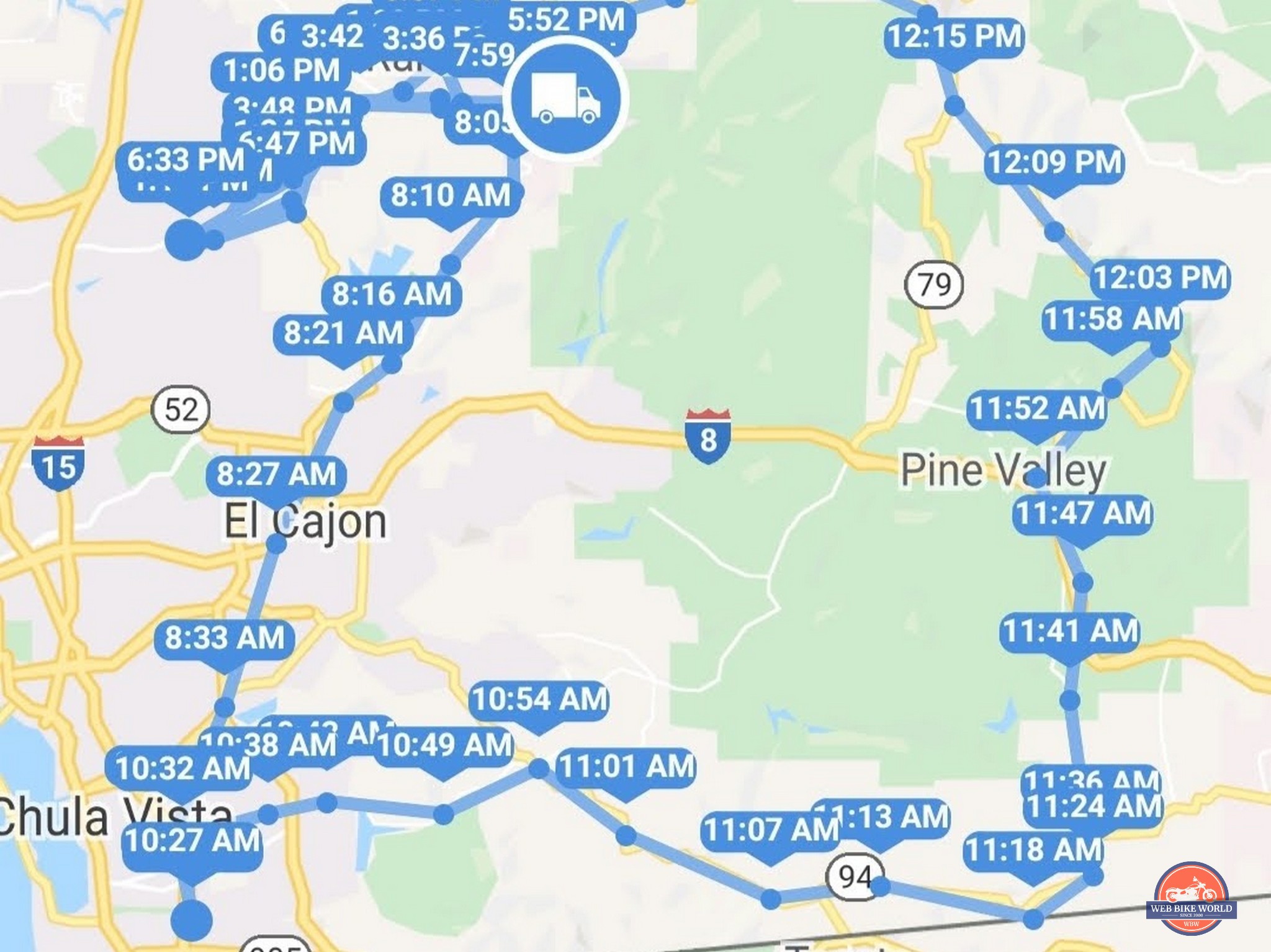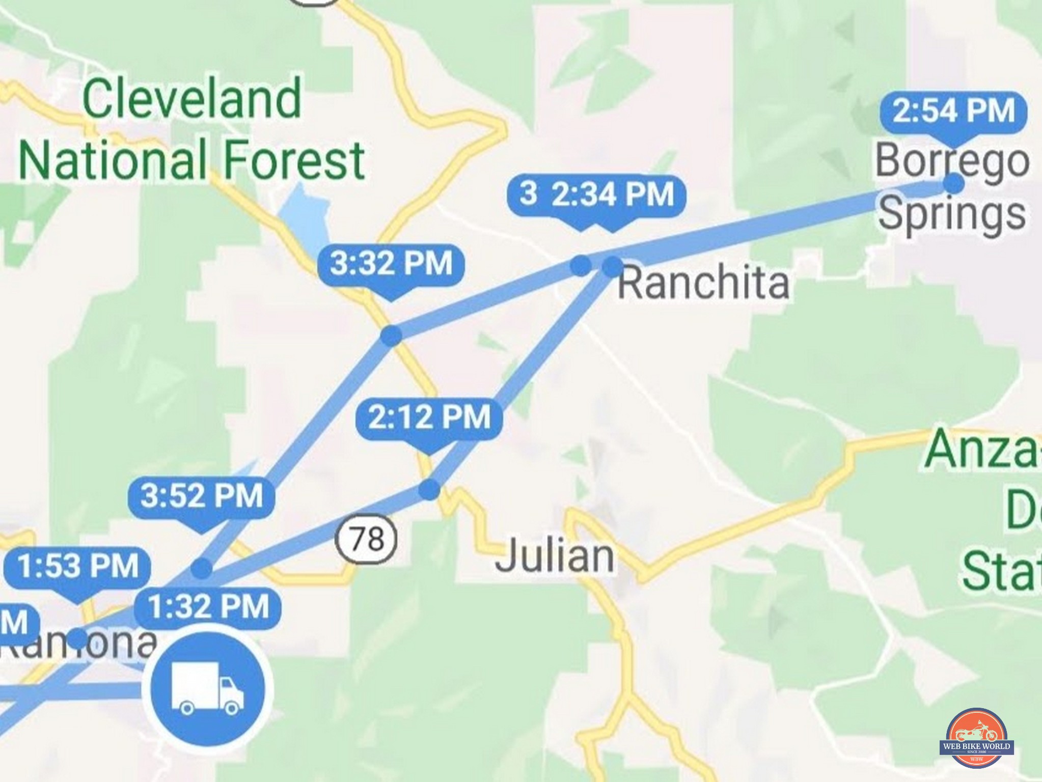 On my first test ride, I set the frequency to Low and headed out to the desert, where I usually lose cellular signal. The screenshot on the left is the locations reported; it was too infrequent, but my bike’s locations were tracked.