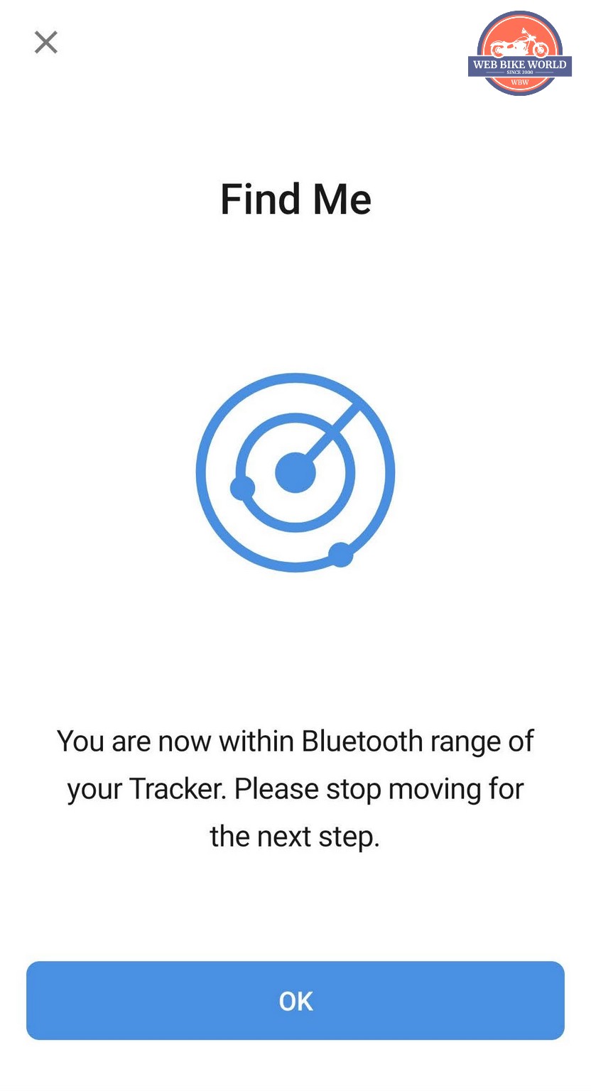 You start by going to the place you think your bike is, and as soon as the phone detects the tracker’s Bluetooth, it gives you the prompt to stop. This distance varied from 45 feet to 20 feet. Then the screen gives you the graphic which indicates you are moving closer or further from the device.