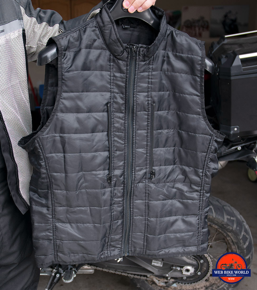 The vest is not pretty at all and looks like something that was cut out of a nicer jacket. It does zip into the middle mesh liner nicely to stay put where you want it and it kept me warm in temperatures as low as 10 degrees C.
