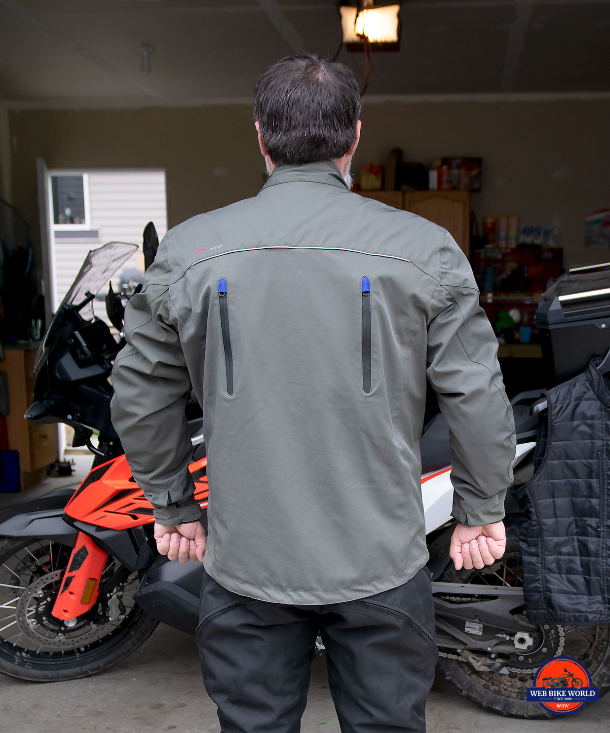 I found that even though the earlier model Olympia Motosports jackets advertised the rain liners as being worn under the jacket, and that’s why they were black, they would fit over also. I believe the venting on their jackets is so good because they don’t try to make waterproof jackets. It rains, you put the rain liner on. Even with Gore Tex. I believe you suffer some loss of breathability. As a result, you have a better breathing jacket on the days most of us want to ride.