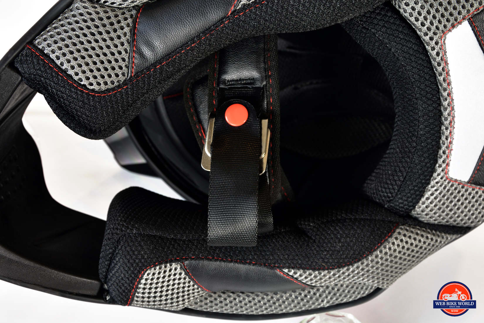 There’s a D ring chin strap that has unusually large loops. I’m more in favor of micro latch systems to be honest for faster and easier helmet install and removal, but have nothing negative to say about the D rings. They work as they should and the strap doesn’t chafe or rub anywhere on my face.