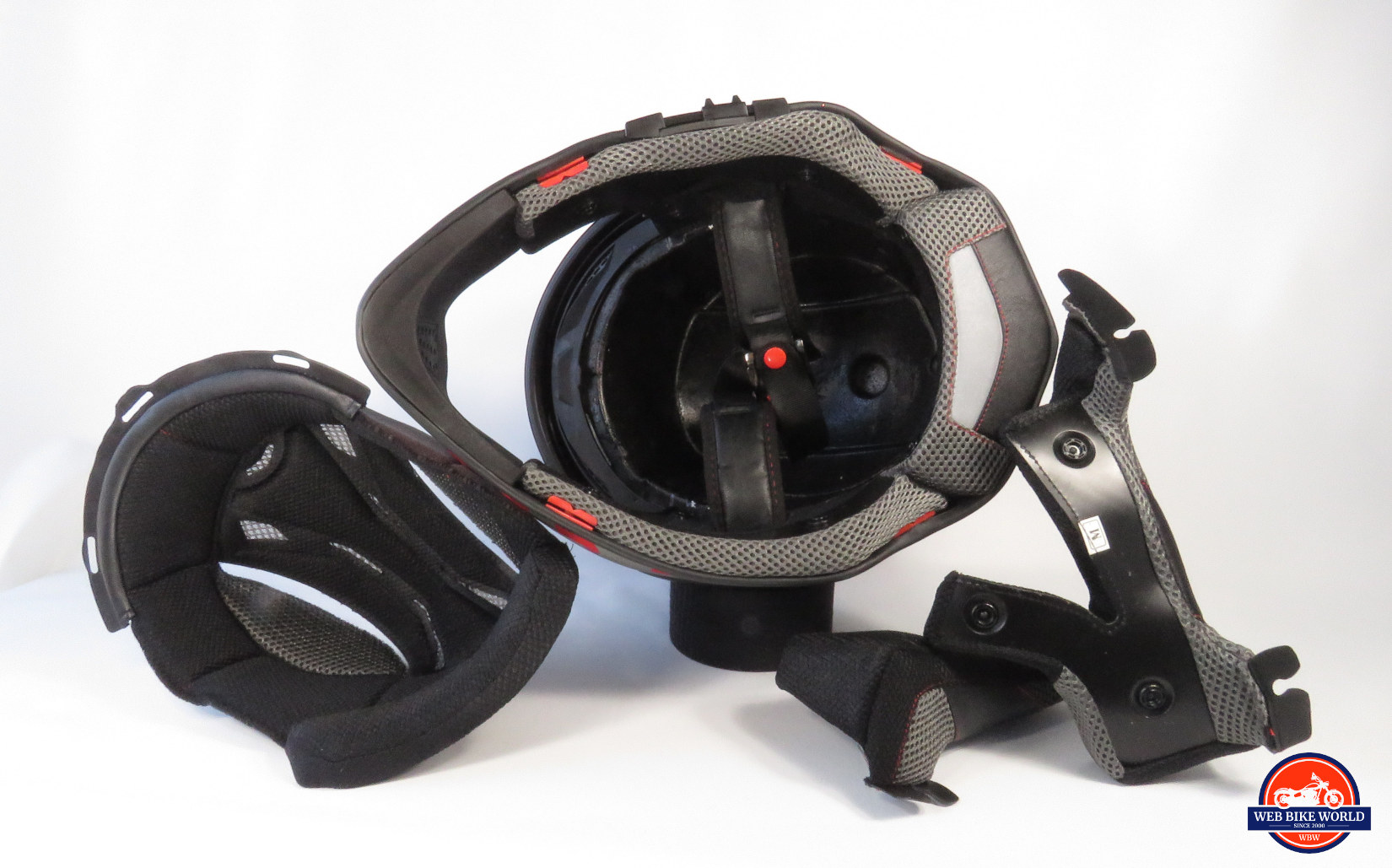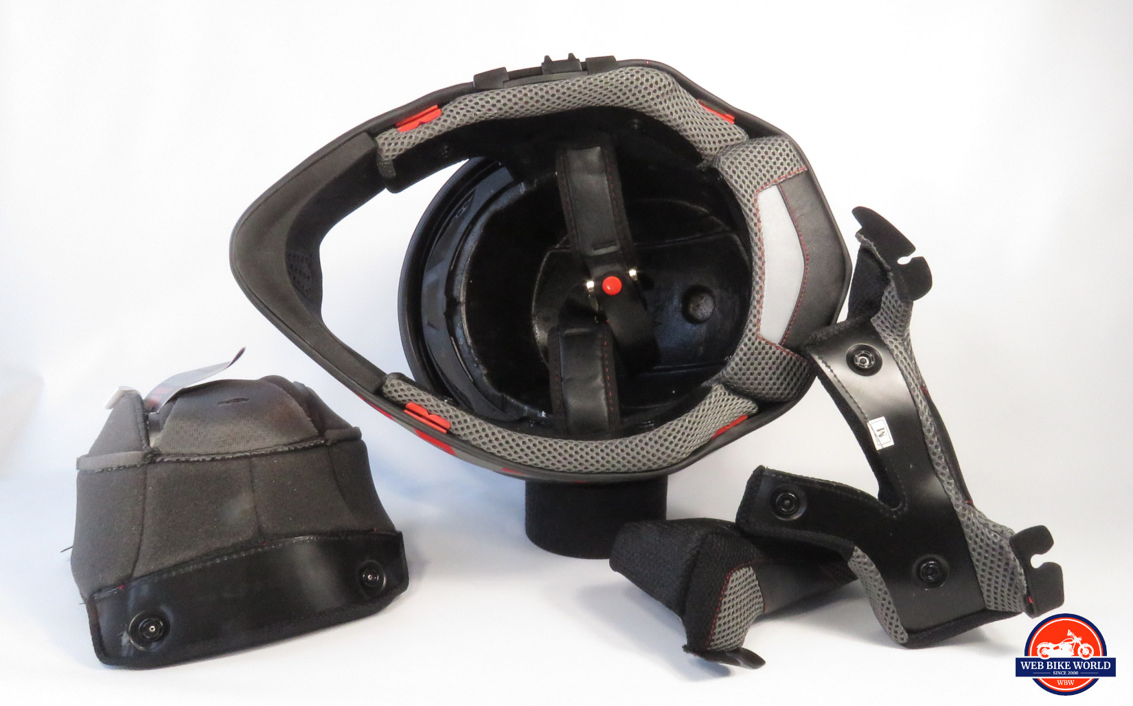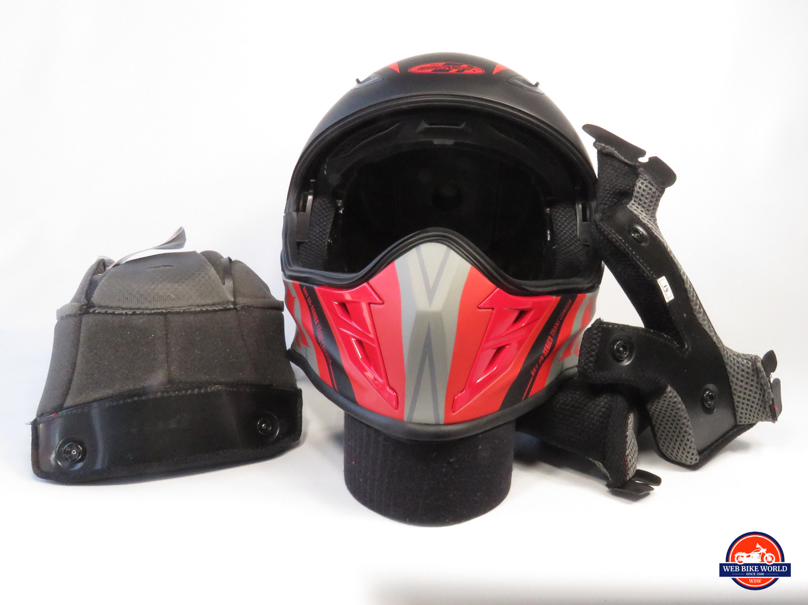 It cleans nicely and comes off the helmet really well when you flip it all the way up and depress both buttons on the pivoting points.
