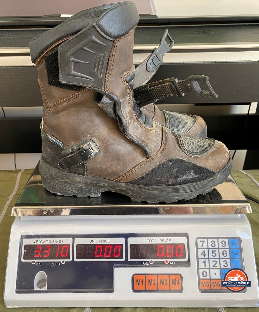 The Whistler Adv boots weigh 3.3 lbs or 1500 grams.