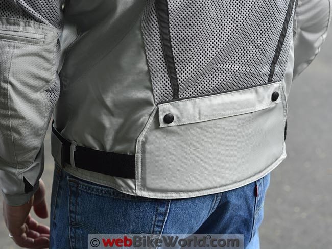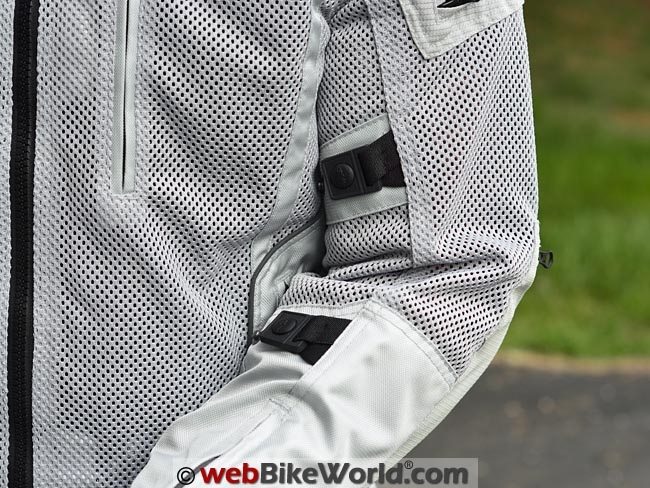 Each sleeve has a three-position snap adjuster at the forearm and bicep. Like every other Joe Rocket jacket that has come through here, the snaps don’t always hold tight.