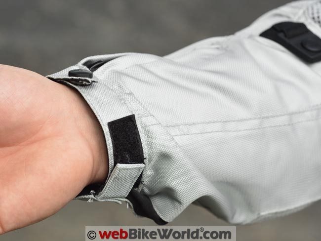 The cuffs have the type of slightly too complicated dual adjusters we’re not fond of. A strip of hook-and-loop adjusts the cuff diameter, while the zipper is used to open and close the sleeve end. A snap then shuts the cuff closed after the zipper is secured.