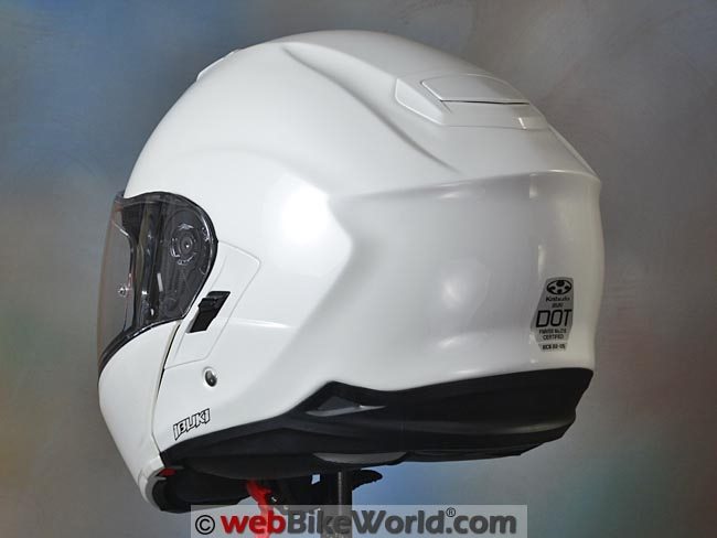 The helmet shape isn’t quite like a “hot knife through butter” when riding and there does seem to be some push when my head turns side-to-side or in cross wind situations, but nothing unusual for a touring helmet.
