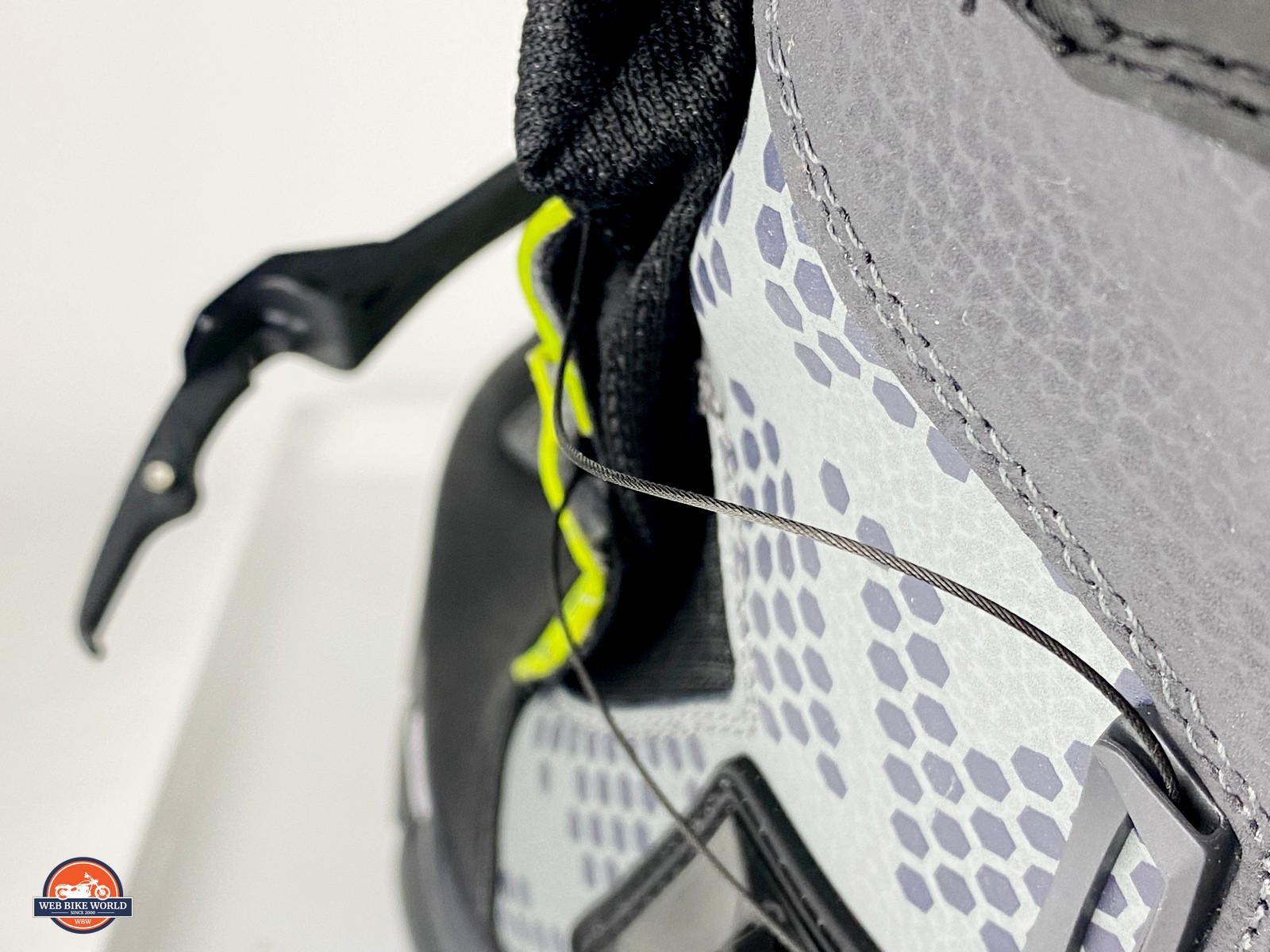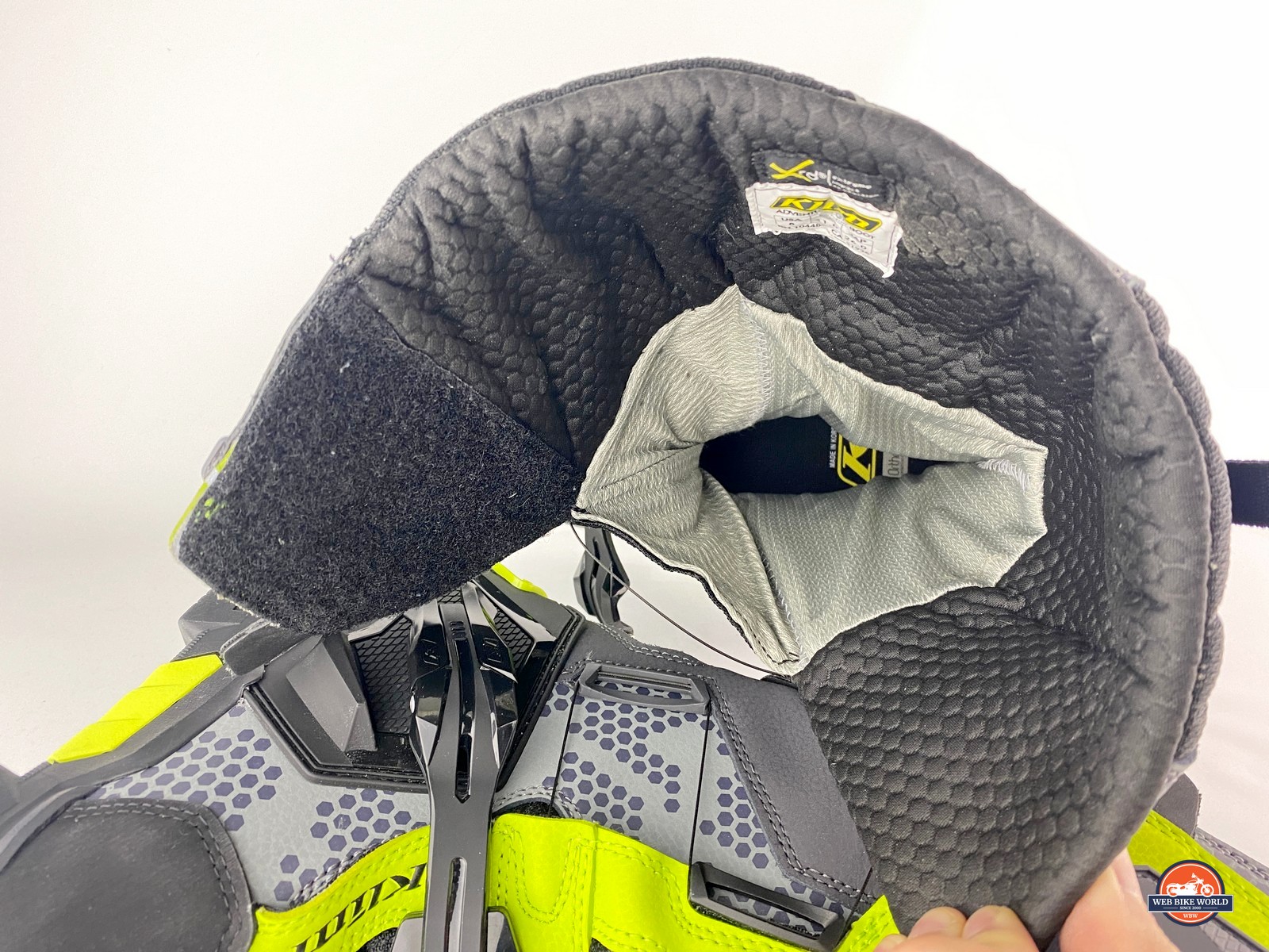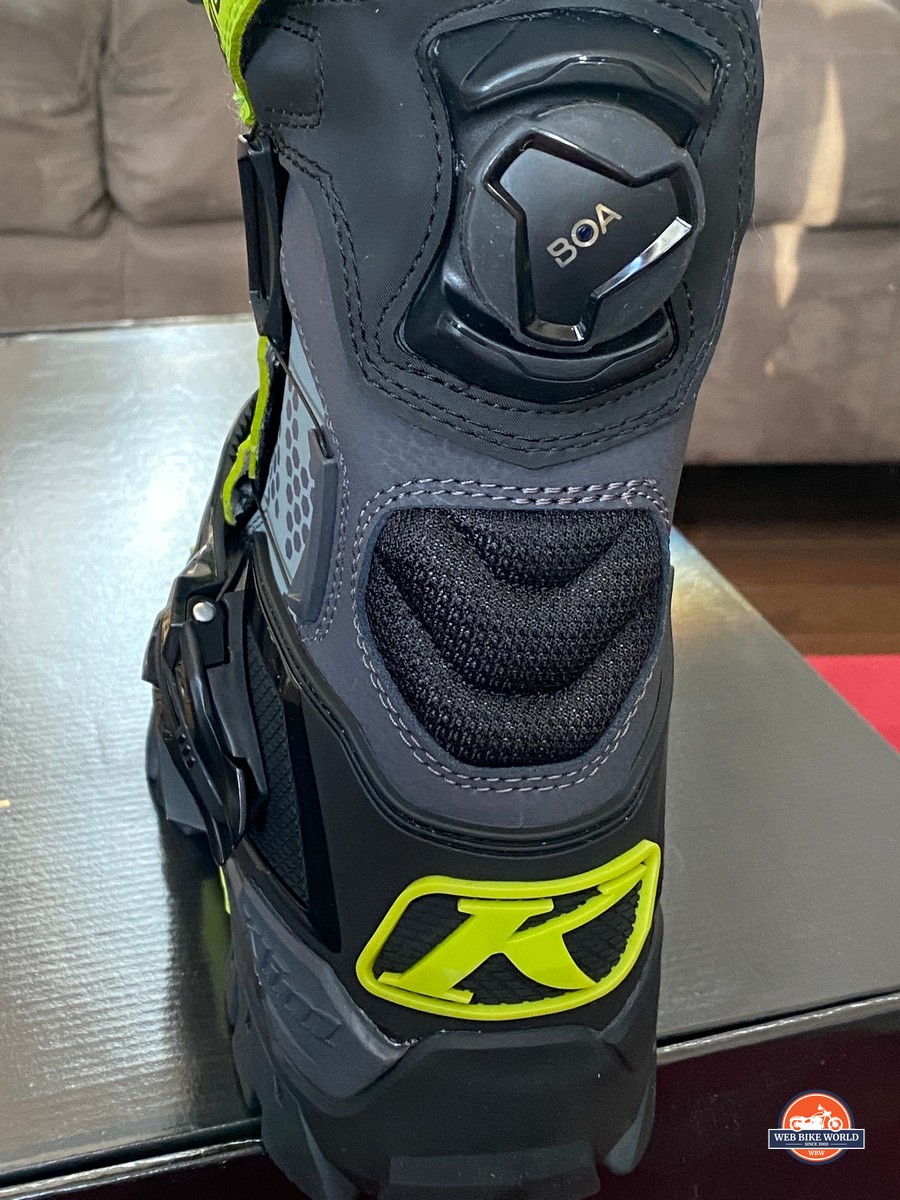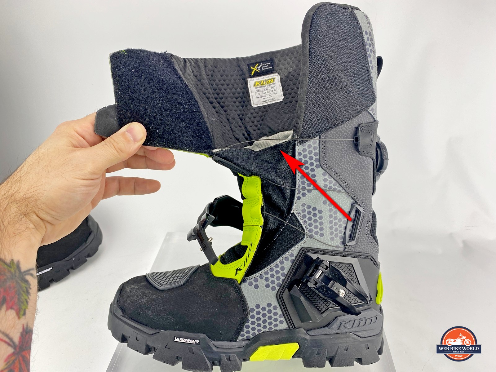 This is the “5MM XRD® IMPACT PROTECTION FOAM ANKLE PUCKS and 5MM XRD® IMPACT PROTECTION FOAM MID-FOOT TOP PADDING” mentioned in the Klim brochure. Klim is banking on thick, soft padding to protect the wearer from ankle injuries, which I’m not sure will work in some crash scenarios while in others I think it will.