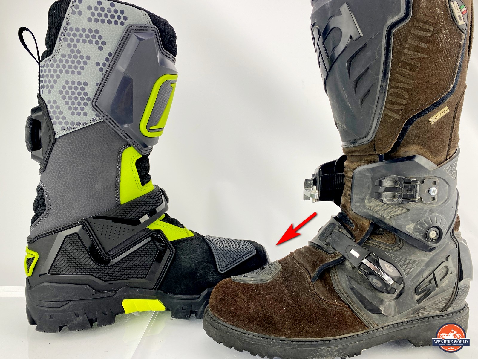 I notice surprisingly thick padding in the Klim Adventure GTX on both sides of the ankle areas instead of hard inserts made of TPU as is found on the Sidis.