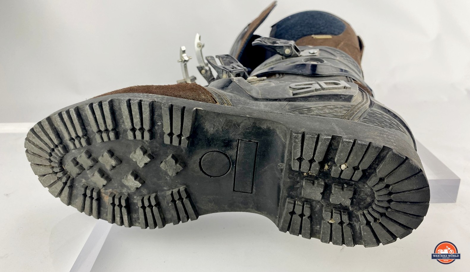 Here’s a photo of the sole on my Sidis after many, many miles just for comparison. The Sidis may or may not win on longevity, but the Klim soles grip significantly better.