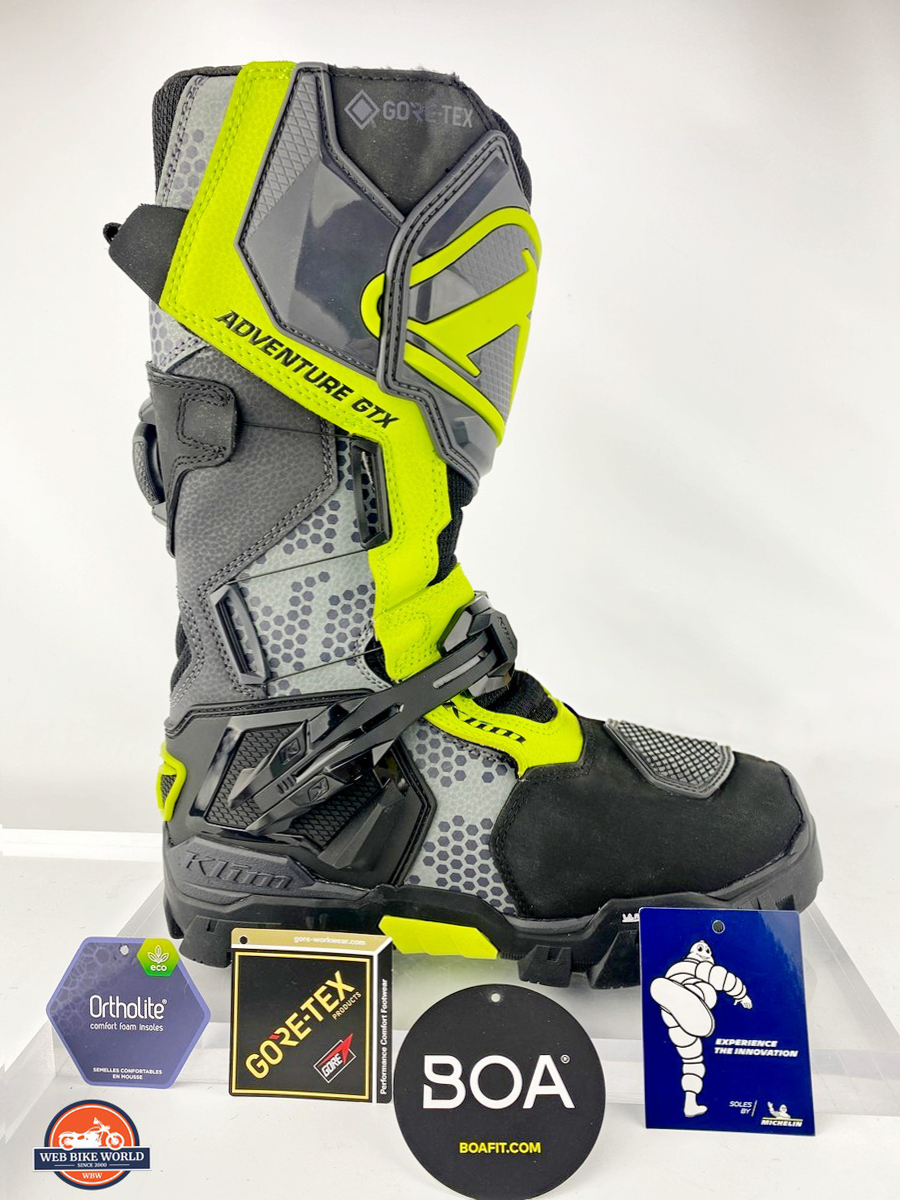 The Hi-Viz yellow accents are effective at getting the attention of anyone possessing a sense of sight, but these boots are designed to be worn under riding pants; those bright colors will be mostly hidden while out on the road. I wonder why Klim opted to minimize the yellow sections down low and not to put any reflective striping or patches anywhere at all?