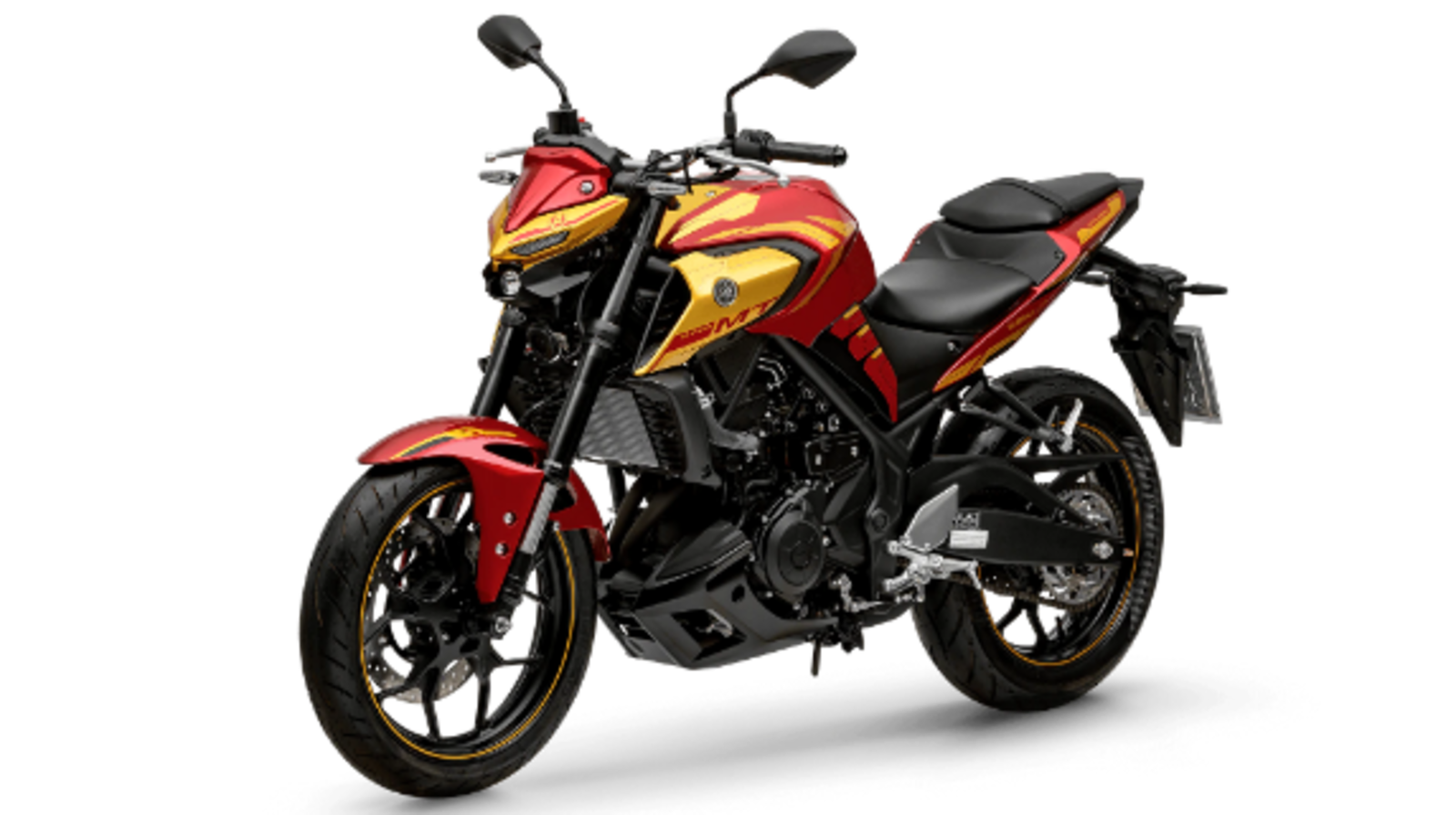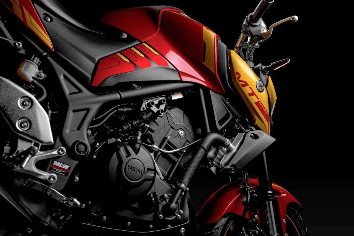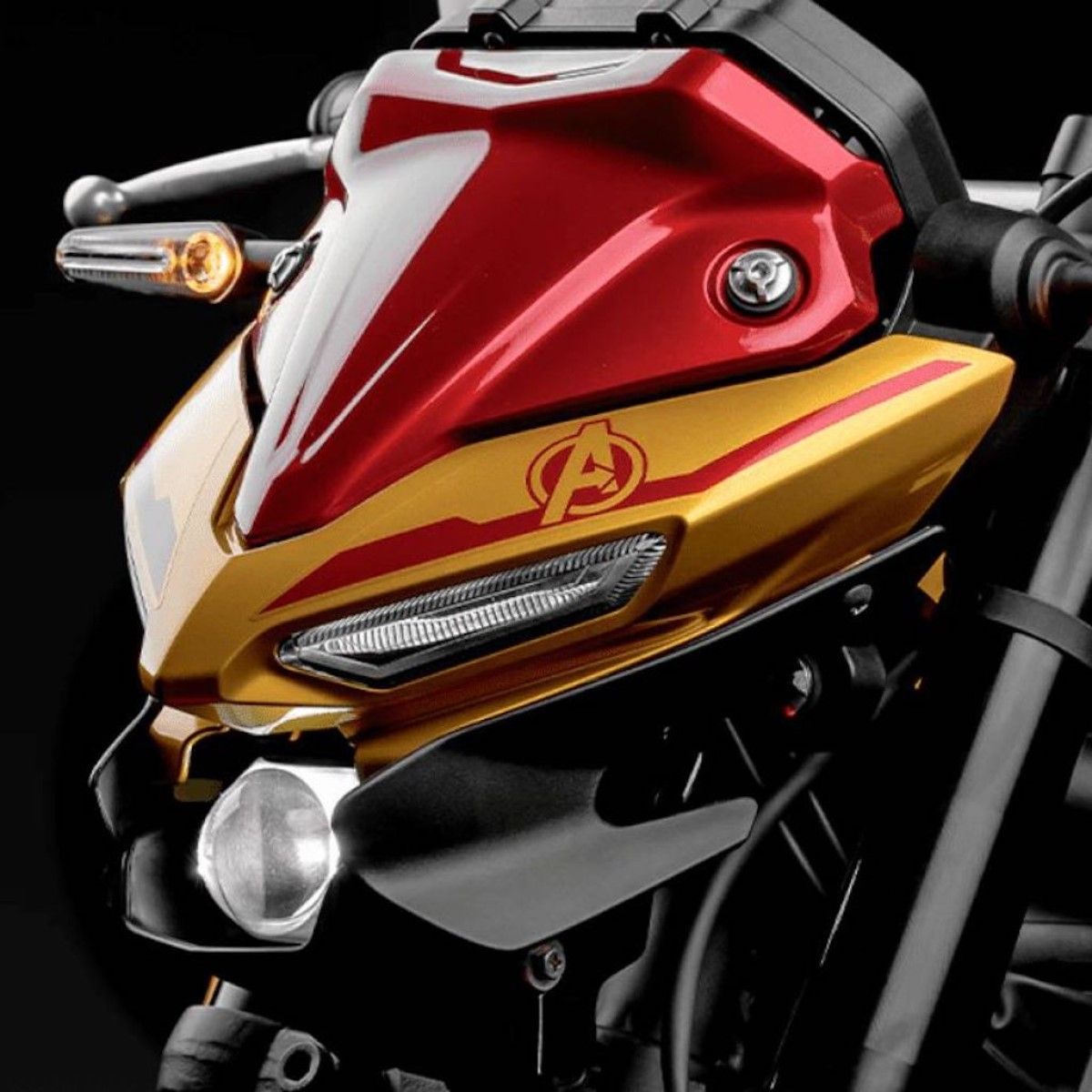 MotoPinas states that Yamaha’s new Iron Man Edition MT-03 features the ‘Avengers’ logo above the LED DRL, a tank pad with the ‘Iron Man’ logo, and yellow rim stickers.