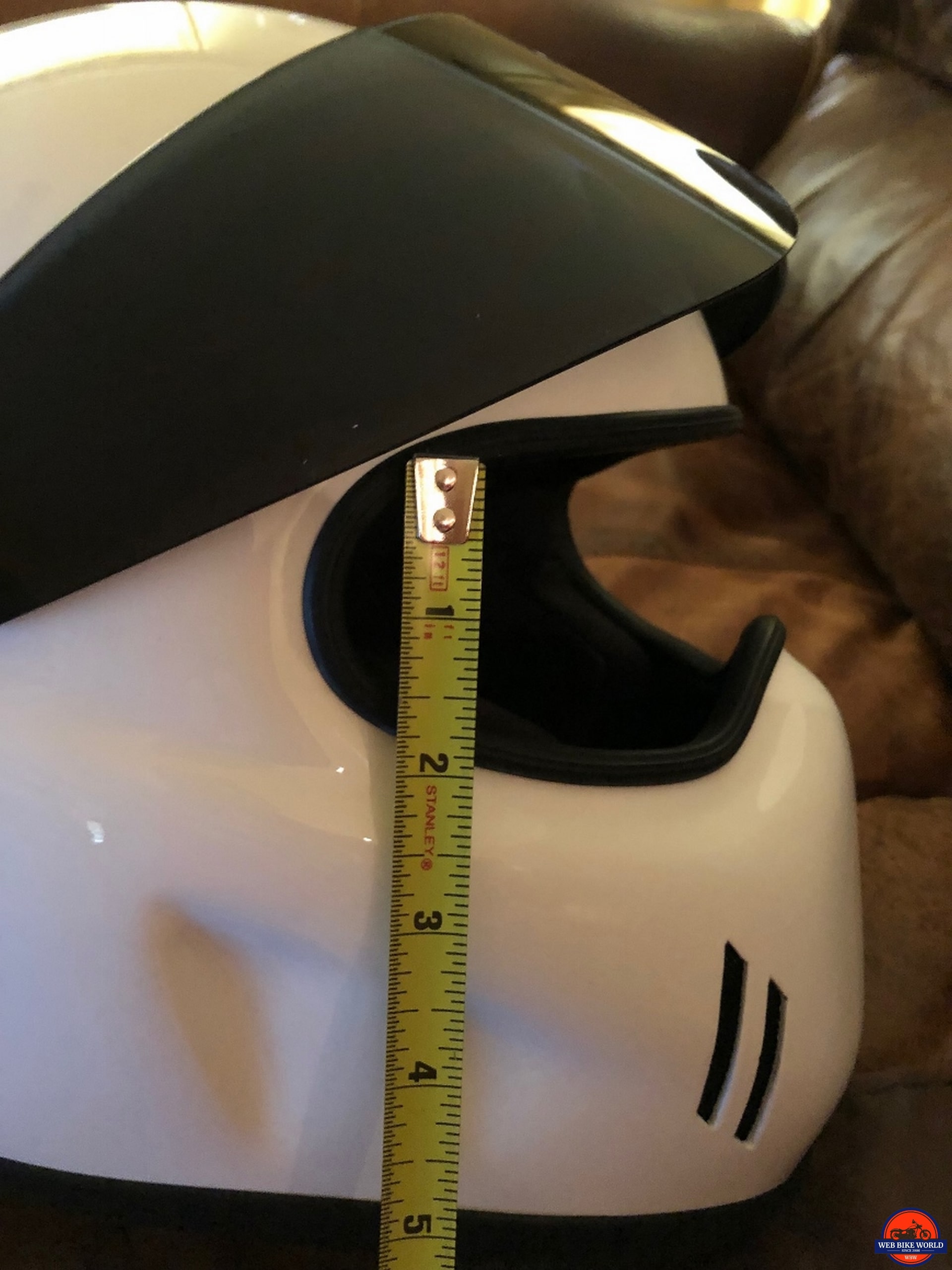 Riders can have the visor completely open, lowered so that there is about an inch gap between the bottom of the visor and the top of the chin bar or the visor can be fully closed. The original helmet that I tested had a gap between the top of the visor and the helmet shell. This gap allowed a line of sunlight to enter the helmet and was pretty annoying.