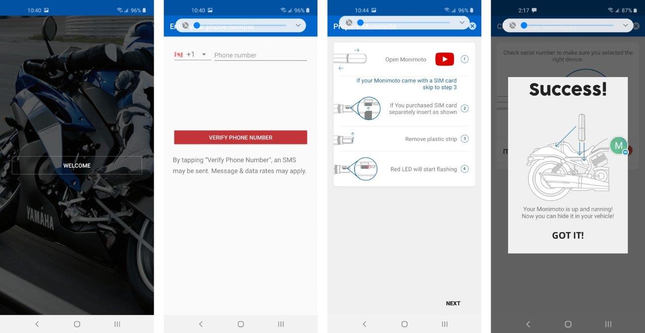 Monimoto App and the Installation Wizard – setup of Monimoto is mostly done via the Monimoto App and its resident Wizard; download the App and launch it. The first thing it will ask for is your phone number (it does not need to be the phone number of the device to be used with the Monimoto but it does need to be SMS capable/enabled); this number becomes your account ID as well.
