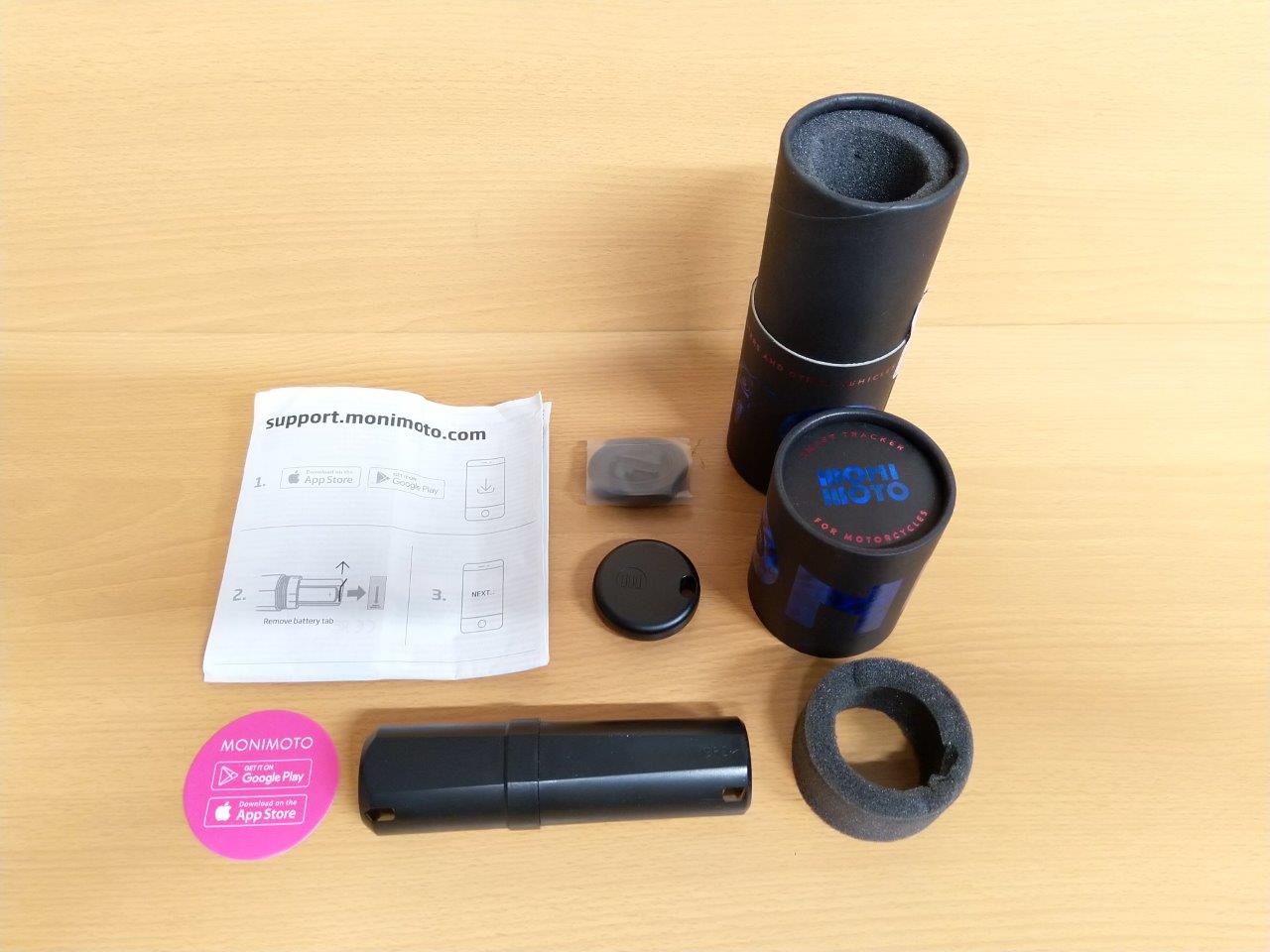 - 2 x CR123A batteries for Monimoto device (installed)