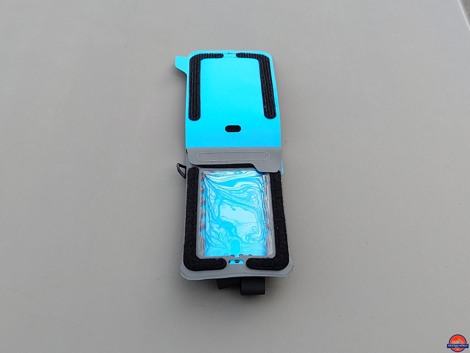 The Navigator product is truly the sum of its parts. The main piece is a tube cut sleeve or pocket, flat sealed at one end with an overflap at the other. The lower back side of the sleeve has a centre pass-through cutout and two small ventilation holes on the outer edges.