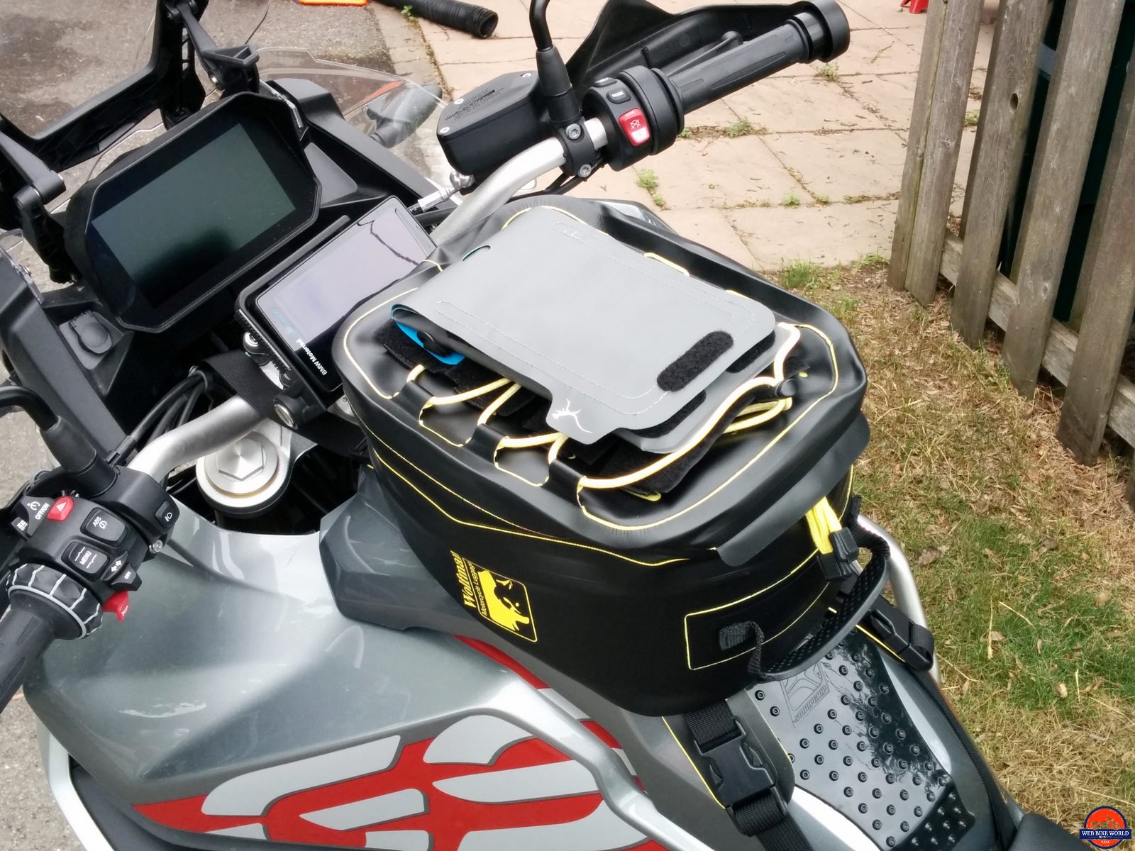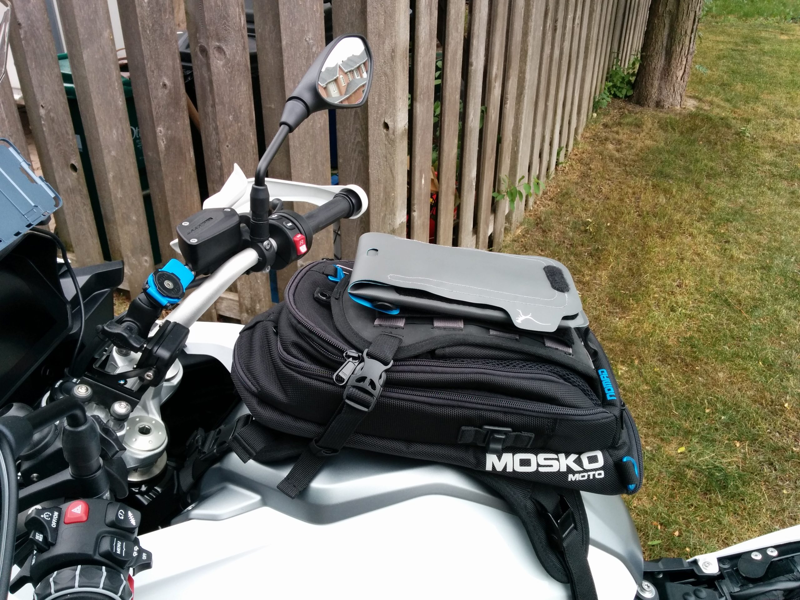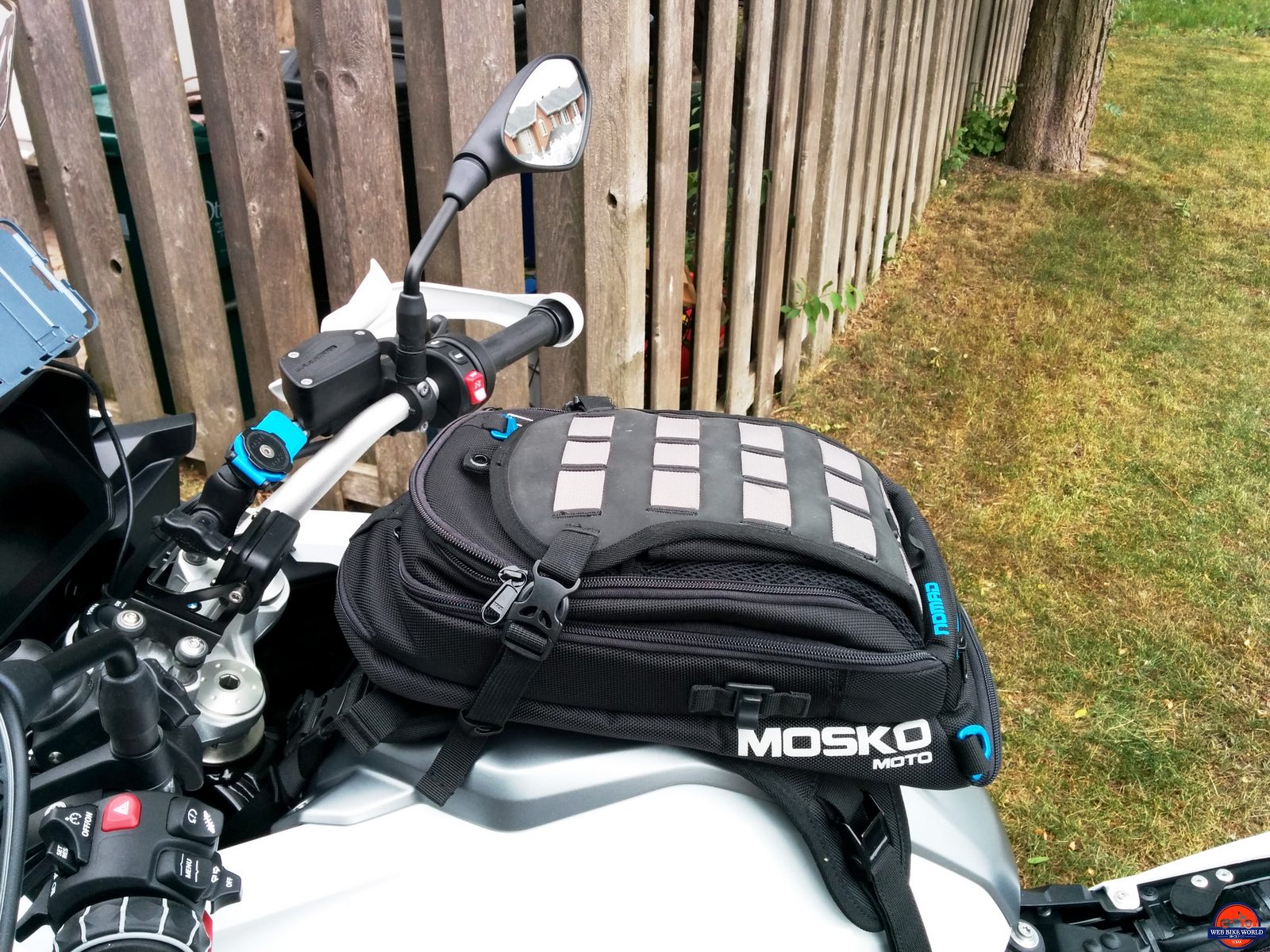 Now used on three different motorcycles with three different tank bags offering MOLLE and/or Velcro section pieces on top – the Mosko Moto Pico and Nomad Tank Bags and the new for 2020 Wolfman Blackhawk Tank Bag (wBW review ongoing), the Navigator fits and functions without any issues.