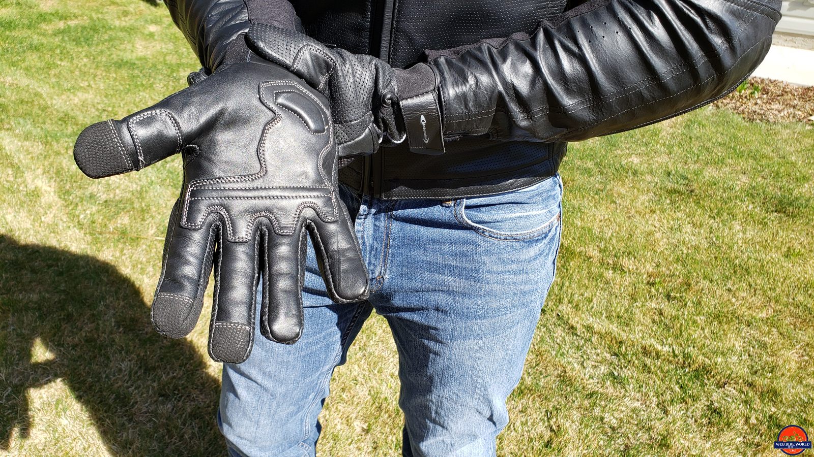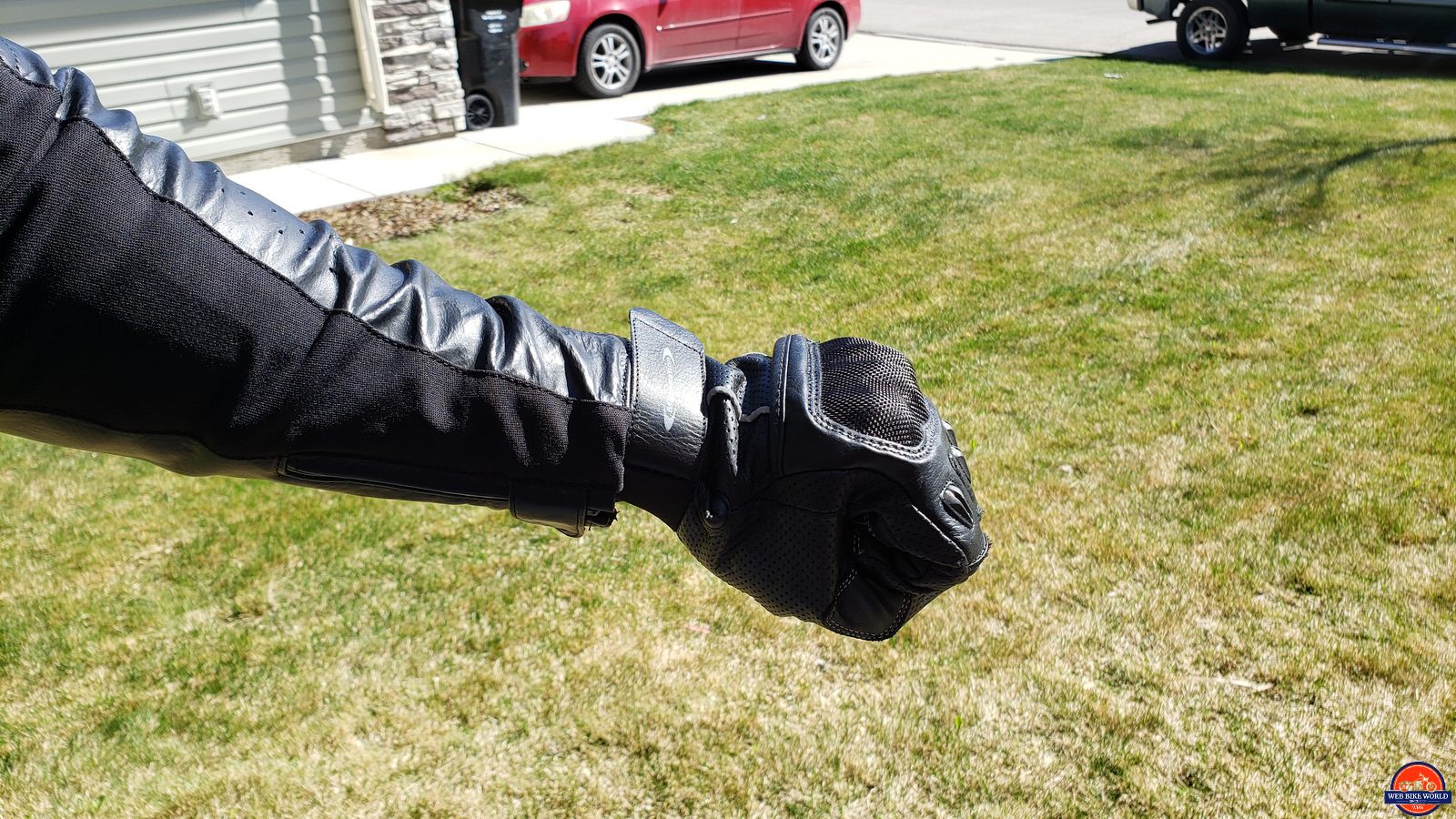 The glove covers the entire hand and wrist comfortably, extending about 1.5 -2″ down the arm. Not quite a gauntlet, but adequate coverage and protection. With a jacket on, there is no skin exposed. The cuff of the glove doesn’t comfortably tuck under the sleeve of any of the jackets I’ve worn with the Campeon’s (Fieldsfeer Suzuka, REAX Jackson, Motonation Dominator), so having a bit of material to protect the wrist is welcome.