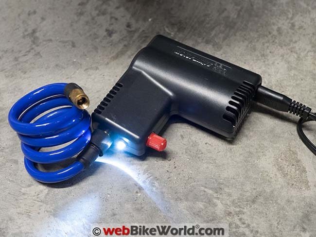 It provides pressures up to 100 psi and it’s small enough to fit under the seat of many motorcycles.