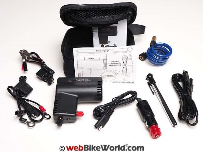 Multiple power cables, a zero-loss air hose and even a stick-type air pressure gauge is included.
