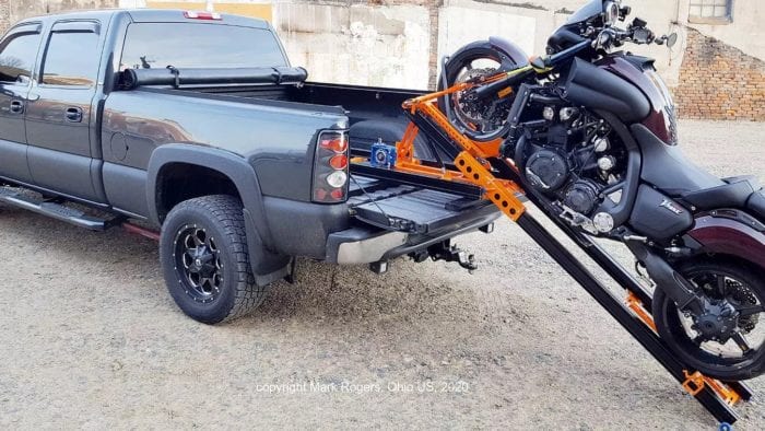 Loading Made Easy Figuring out how to get your $20,000 motorcycle up a $200 ramp into the back of the bed of your truck is never easy. If your bike needs to be transported and you can’t ride it anywhere, typically the only option to move the motorcycle is to haul it into the back …