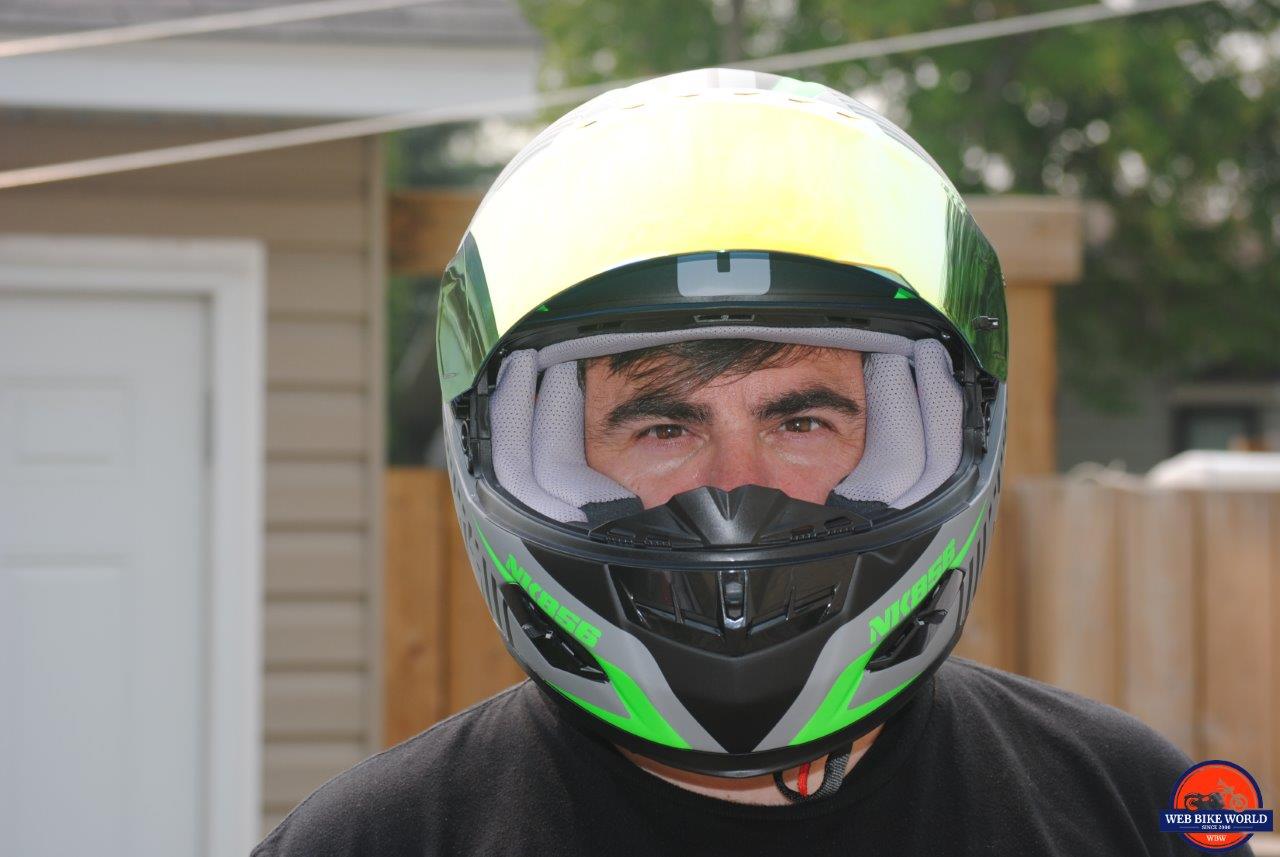 The anti-fog chrome visor did not live up to its name. The visor fogs constantly and required me to frequently crack open the visor to get fresh air to come in and assist in defogging the visor. The redeeming factor with this visor is that once it was on, it has a very nice blue shade that made the sky appear much nicer than the smoke caused by forest fires covering Calgary and the surrounding areas during the testing of this helmet.
