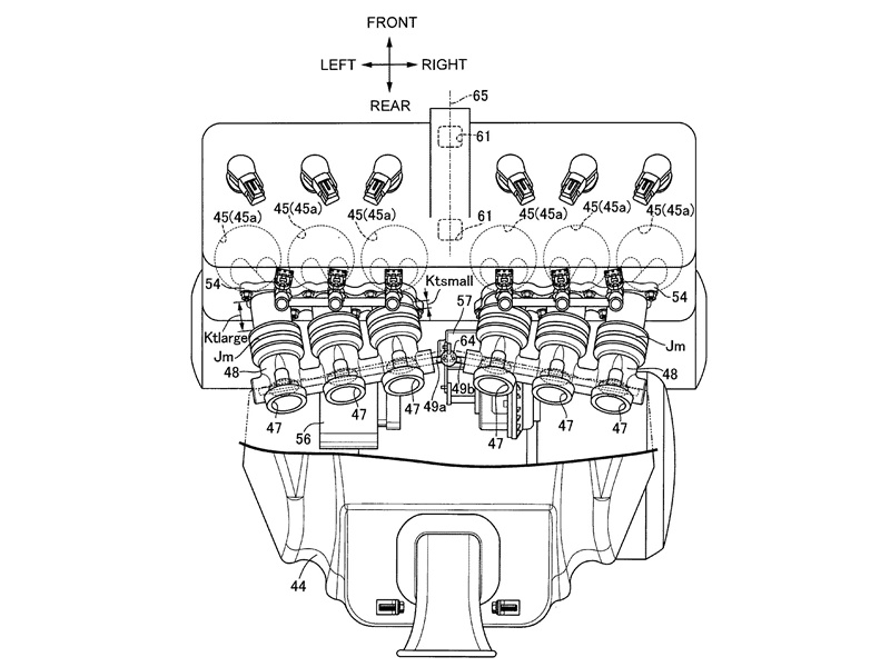 That engine is a different configuration. There’s no indication of displacement with the patent filing. I would be skeptical of that. It would make sense to have high displacement, but it would be surprising if it were as big as the Gold Wing’s mill. I don’t think it has to be.