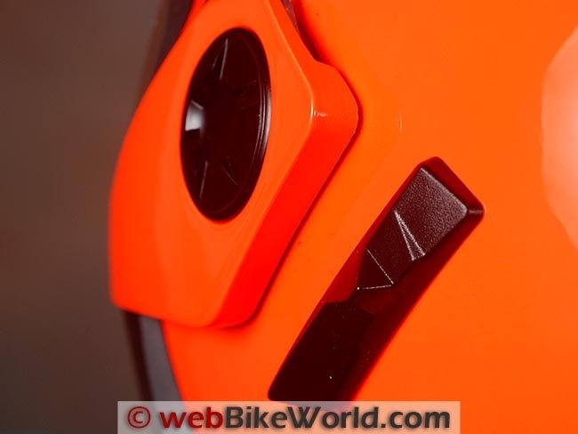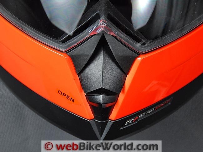 The single large chin vent opens with a “V” shaped button in front, although that button has a somewhat “flabby” feel without a good detent. It works though, and that’s what counts.