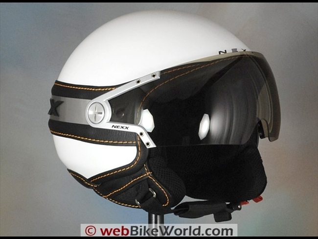 For example, the X60 “Vintage”, shown here with its nice tan and dark brown leather is retro in appearance, while the white X60 “Ice”, with its raised “NEXX” lettering, is the modern interpretation of the same design.