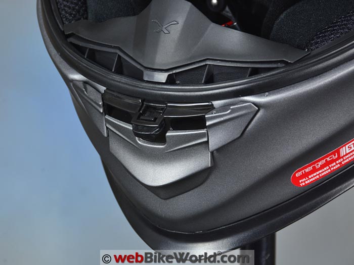 The liner is fully removable, as are the cheek pads. The cheek pads have emergency release straps, which can be pulled to quickly remove the padding.