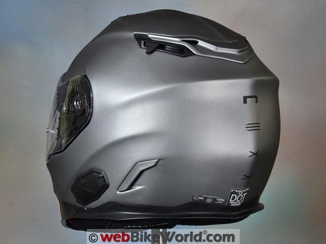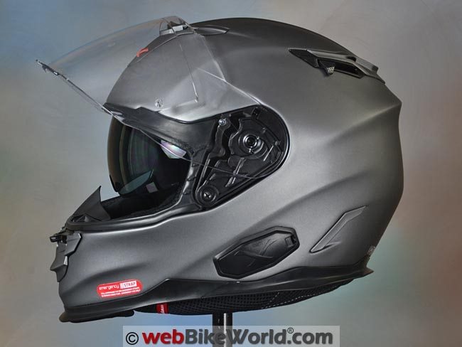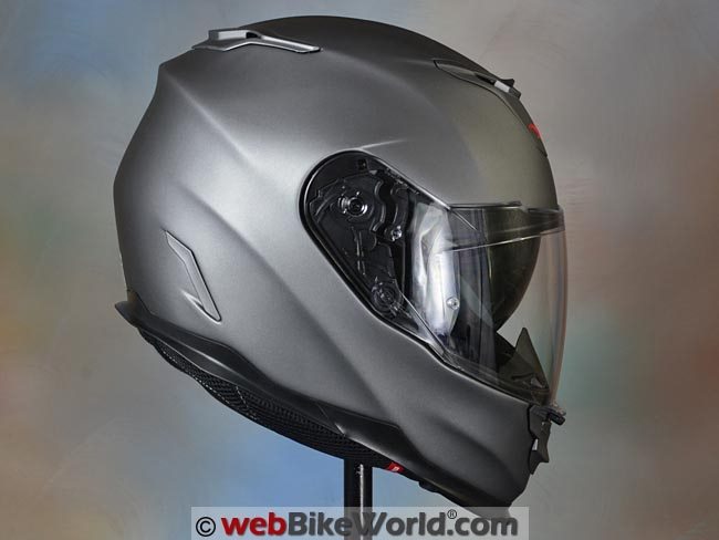 The XT1 has an internal sun visor, which slips into a cavity above the forehead, eliminating the possibility of Snell certification.