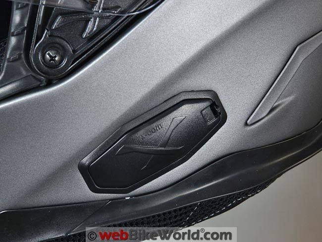 The built-in X-Com intercom is a version of the Sena SMH-10R (review) low-profile system.