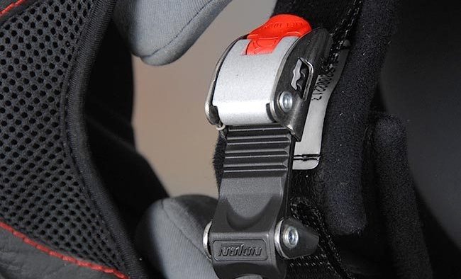The N85 has the Nolan “Microlock” chin strap retainer, which works well but is a bit bulky. The padding is adequate and long enough to protect the rider’s neck, however.