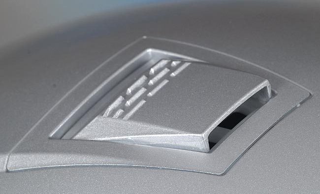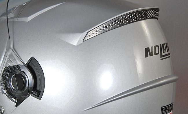 The N85 in Platinum Silver looks very much like its brothers and sisters in the Nolan family tree, with features clearly derived from recent Nolan helmets.